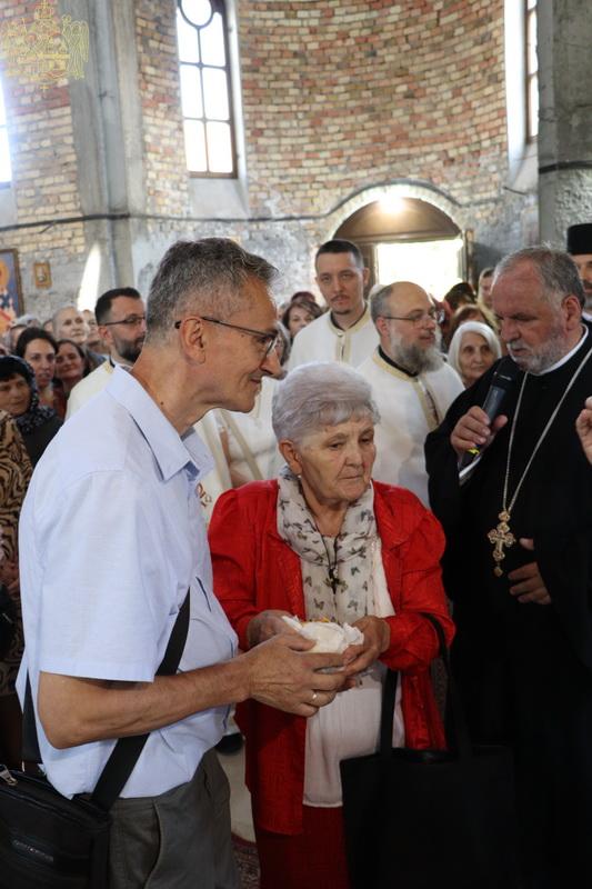 После заамвоне молитве извршен је чин благосиљања славских дарова које је припремила госпођа Радованка Огњеновић, кума храмовне славе. Кумство за следећу годину прихватио је г. Миро Јукић.