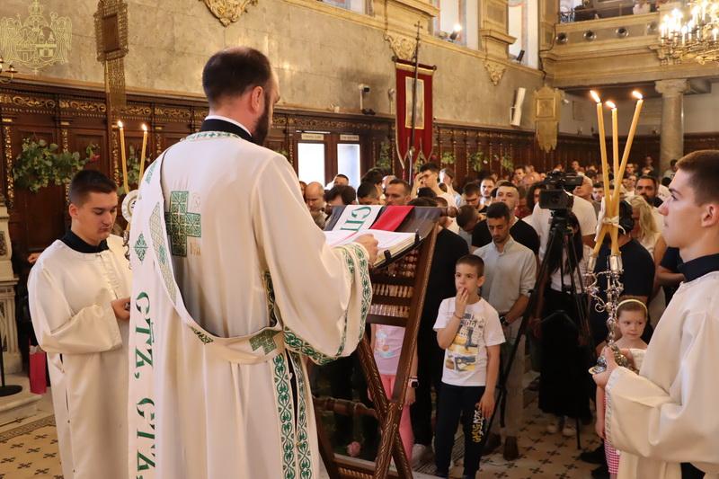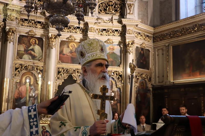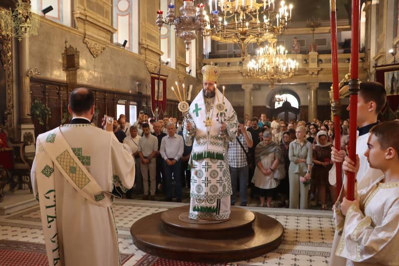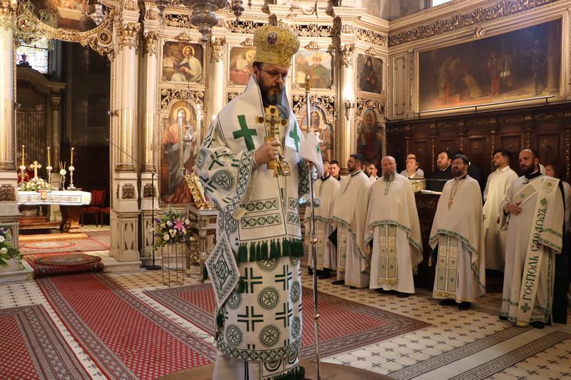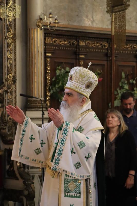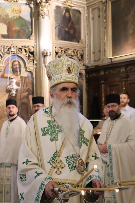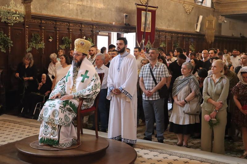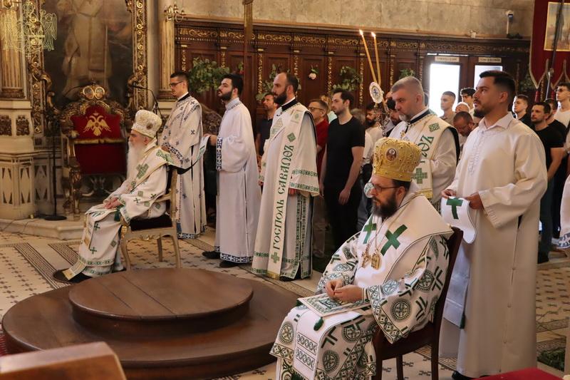 У недељу свете Педесетнице, 26. маја / 8. јуна 2025. године, Његово Високопреосвештенство Митрополит бачки госпoдин др Иринеј началствовао је на светој архијерејској Литургији у Саборном храму у Новом Саду. Митрополиту бачком Иринеју саслуживали су Епископ мохачки господин Дамаскин, свештенство Саборног храма и новосадски ђакони.