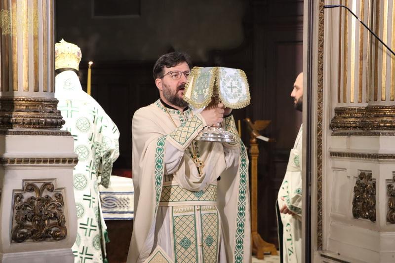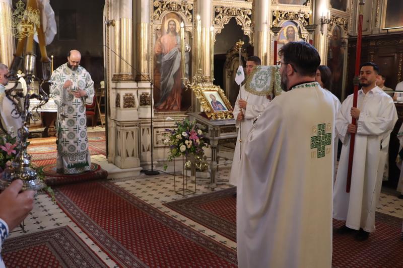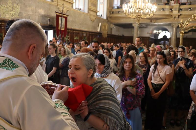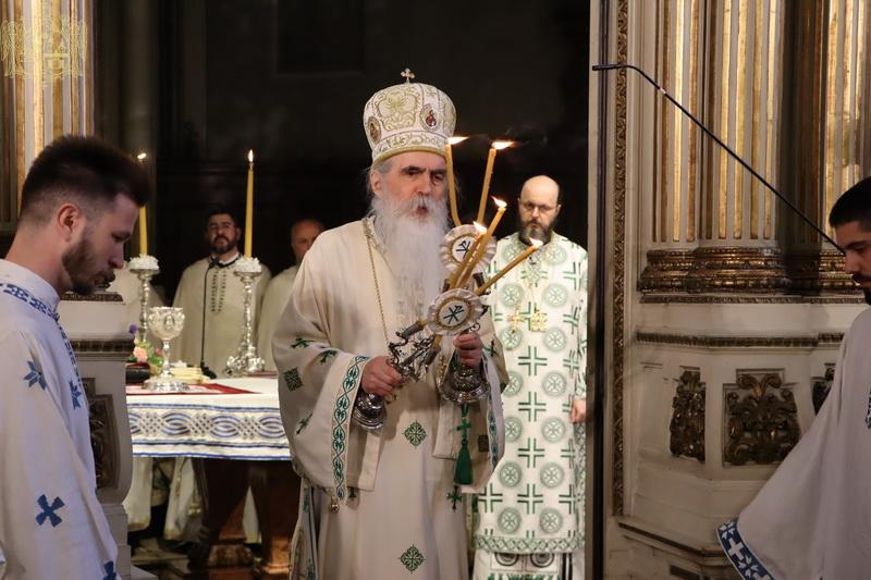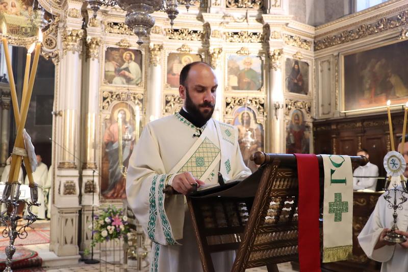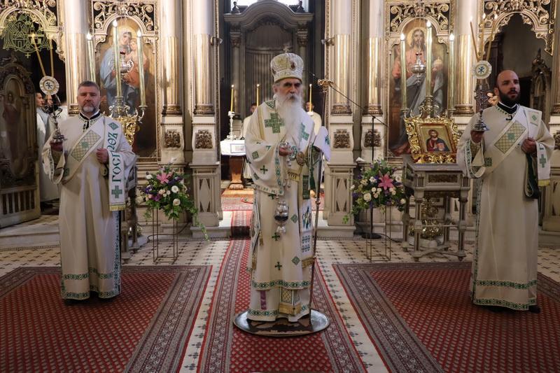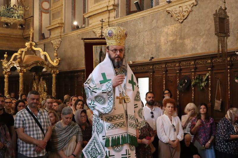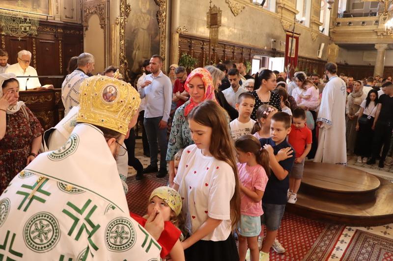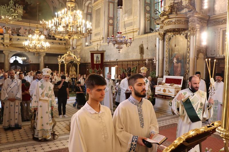 У недељу свете Педесетнице, 26. маја / 8. јуна 2025. године, Његово Високопреосвештенство Митрополит бачки госпoдин др Иринеј началствовао је на светој архијерејској Литургији у Саборном храму у Новом Саду. Митрополиту бачком Иринеју саслуживали су Епископ мохачки господин Дамаскин, свештенство Саборног храма и новосадски ђакони.