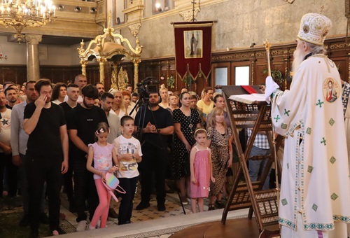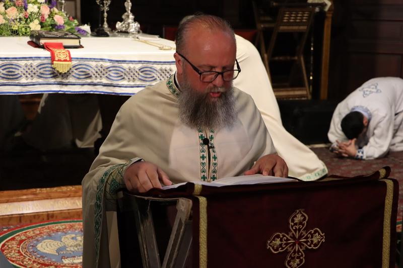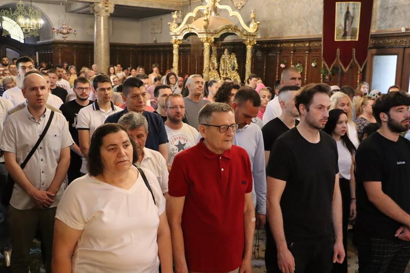 После отпуста свете Литургије, Епископ мохачки господин Дамаскин је служио празнично вечерње свете Педесетнице, на којем су прочитане коленопреклоне молитве.