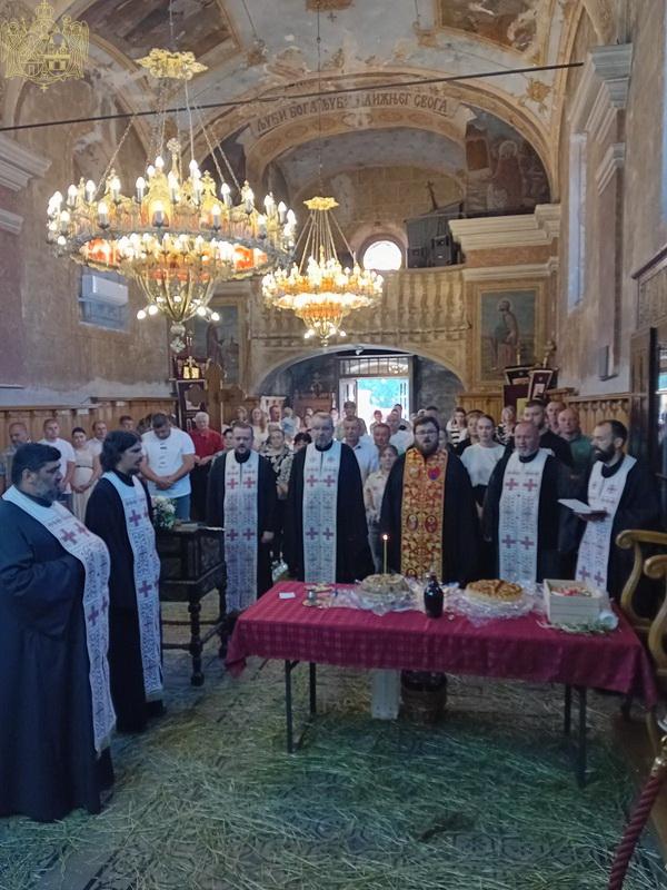 На дан празника, светом Литургијом је началствовао протојереј Никола Темеринац, парох жабаљски, уз саслужење свештенства Епархије бачке. На крају свете Литургије извршен је трократни опход око храма са поменом упокојеним оснивачима, ктиторима и парохијанима. Чином благосиљања славских дарова началствовао је протонамесник Перо Анђелић, архијерејски намесник жабаљски, уз саслужење свештенства Епархије бачке. На крају богослужења, протонамесник Перо Анђелић је поучио верни народ пригодном беседом. Кумови овогодишње храмовне славе су били чланови породице Петра Багића, а кумство за следећу годину је прихватио Миленко Тривуновић.
