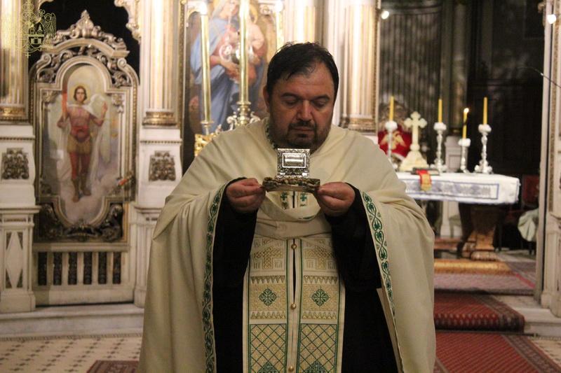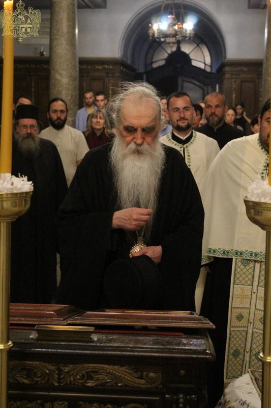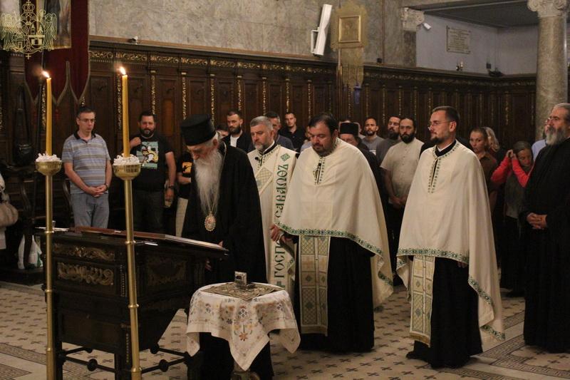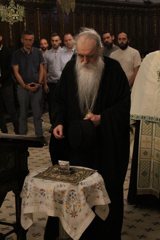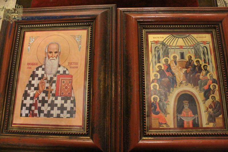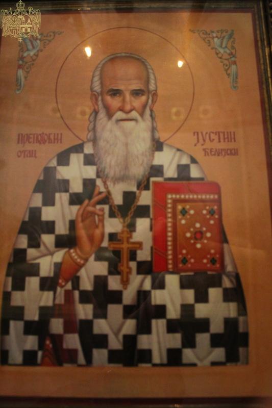 Са благословом Високопреосвећеног владике Иринеја, део светих моштију преподобног оца Јустина Ћелијског је током свеноћног бденија био изложен верном народу на поклоњење и целивање. После отпуста свете Литургије, Митрополит бачки Иринеј је присутнима честитао празник, уз молитвену жељу да Господ све благослови, заступничким молитвама преподобног оца Јустина Ћелијског и свих светих.