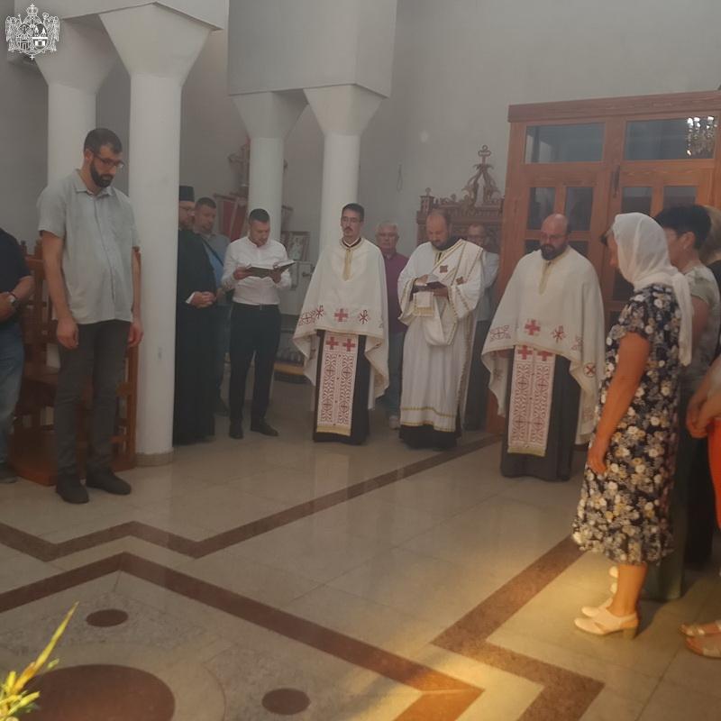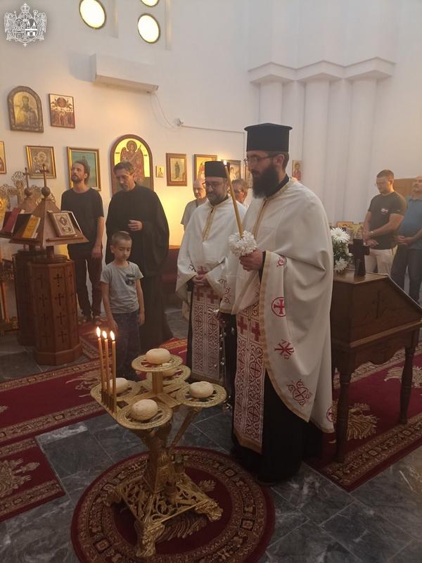 Вечерње богослужење је служио протојереј Бранислав Мркић, архијерејски намесник новосадски други, уз саслужење свештенства Епархије бачке. По завршетку вечерња извршен је чин благосиљања славских дарова, а затим је прота Бранислав у беседи истакао да је важно да имамо у срцу спремност на жртву у односу према ближњима у временима која су тешка и са много искушења, али са знањем да су се и наши преци храбро држали и борили са искушењима кроз историју. Презвитер Огњен Верић, парох степановачки, захвалио је свима који су дошли на храмовну славу, куму славе Новаку Самарџићу и његовој породици, а затим је предао део славског колача новом куму Алекси Грубачу и његовој породици.
