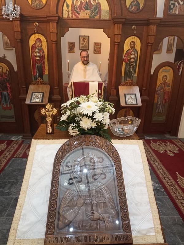 На дан празника, свету Литургију је служио презвитер Дејан Новаковић, док су за певницом појали полазници школе појања из карађорђевачке парохије. После прочитаног јеванђелског одељка, презвитер Дејан се обратио верном народу пригодном беседом и честитао храмовну славу. По заамвоној молитви, извршен је трократни опход око храма, после чега је одслужен парастос свима који су свој живот положили за веру и Отаџбину, од Косовског боја до данас.