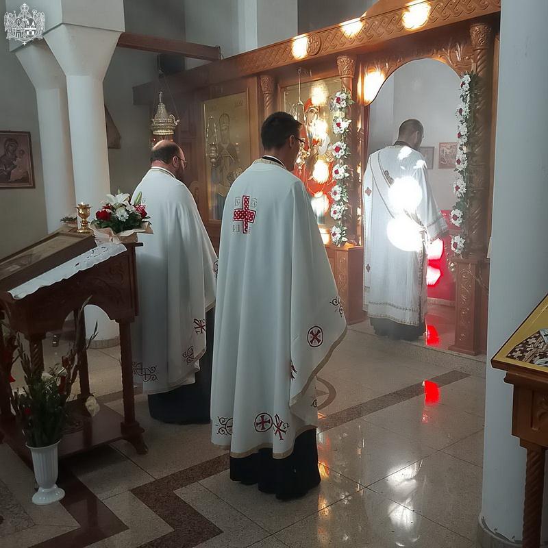 Вечерње богослужење је служио протојереј Алексеј Блануша, парох у Равном Селу. После чина благосиљања славских дарова, презвитер Сава Фан је произнео беседу, честитајући свима празник.