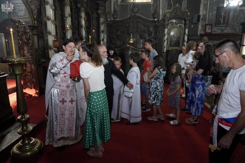 Посебну радост чинила су деца која су са својим благочестивим родитељима испунила капелу. По заамвоној молитви је извршен опход око светог храма, помен упокојеним ктиторима и добротворима капеле и чин благосиљања славских дарова, приноси парохијана и славских кумова.