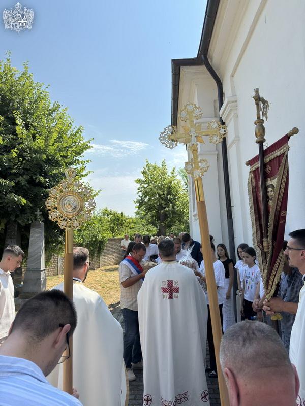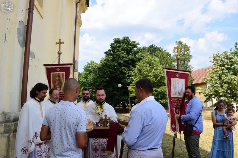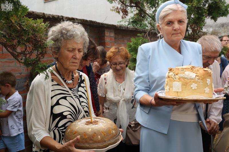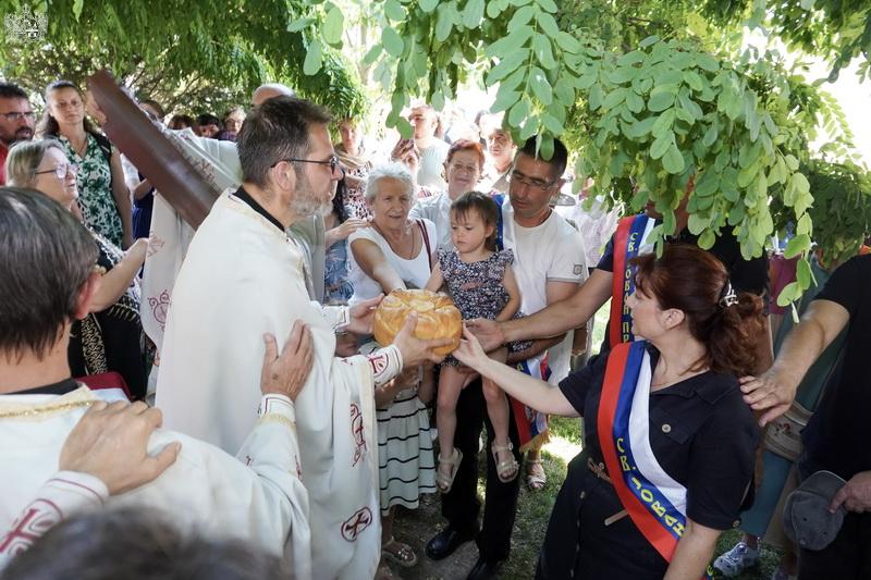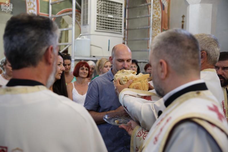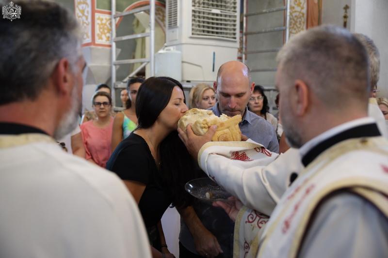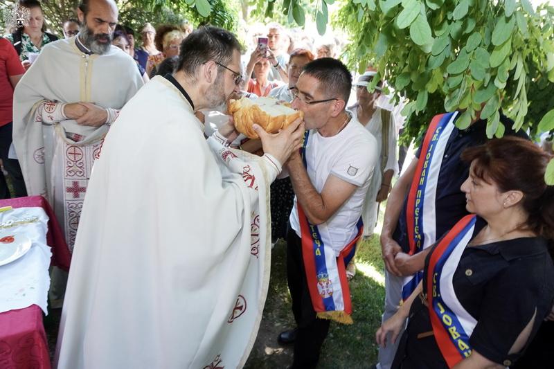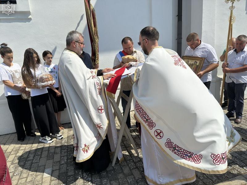 После свете Литургије извршен је трократни опход око светог храма, а потом и чин благосиљања славских дарова. Овогодишњи кум г. Зоран Чегар са породицом даривао је храму свето Јеванђеље, а залог кумства за наредну годину примила је породица Дамјана Василишина.