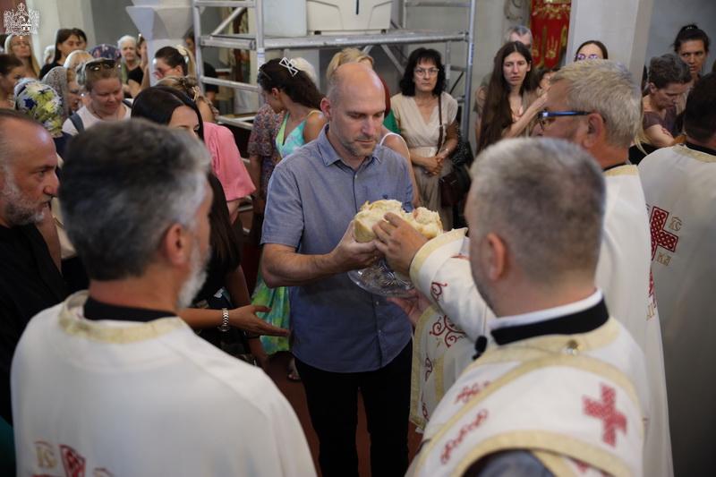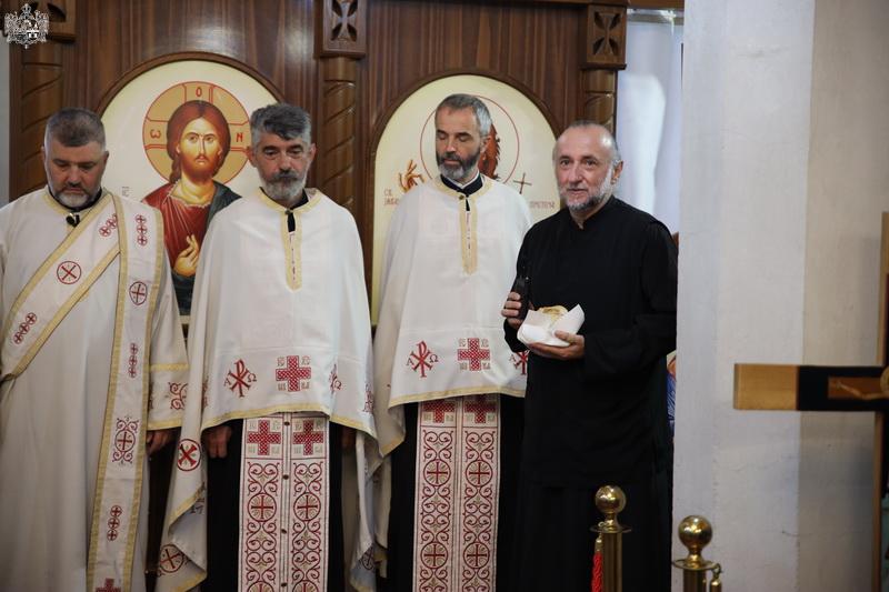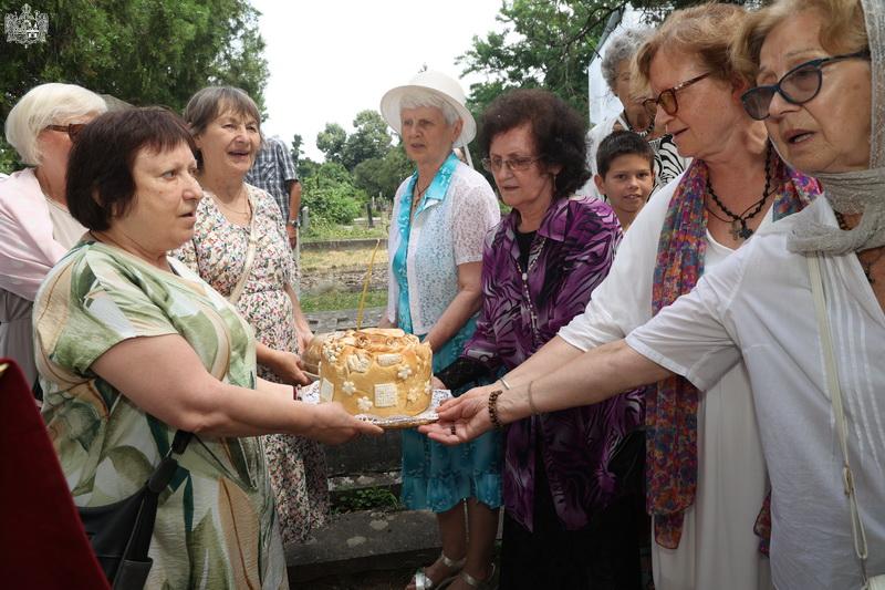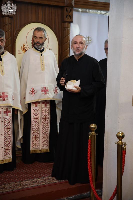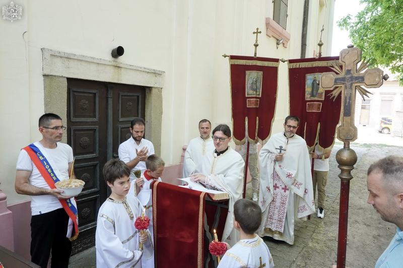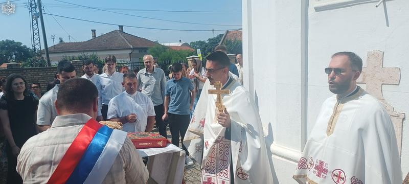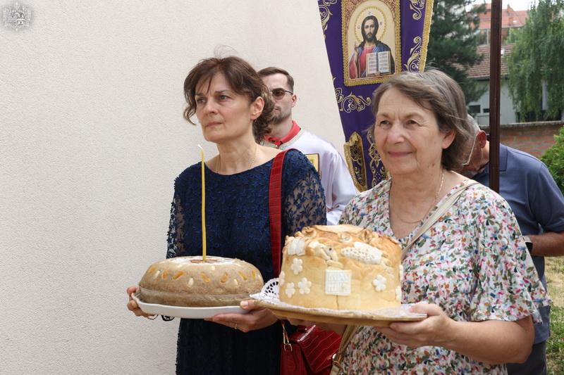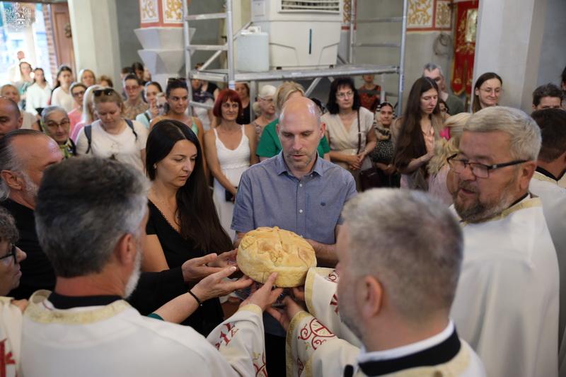 После свете Литургије извршен је трократни опход око светог храма, а потом и чин благосиљања славских дарова. Овогодишњи кум г. Зоран Чегар са породицом даривао је храму свето Јеванђеље, а залог кумства за наредну годину примила је породица Дамјана Василишина.