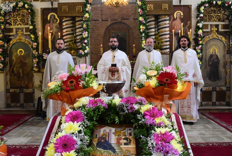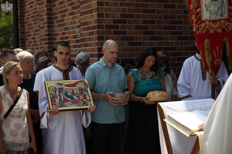 На дан празника светом Литургијом је началствовао презвитер Александар Шарчански, војни свештеник из Новога Сада, уз саслужење свештенства Епархије бачке. После заамвоне молитве, извршен је трократни опход око храма и служен помен оснивачима, свештенослужитељима и парохијанима храма.