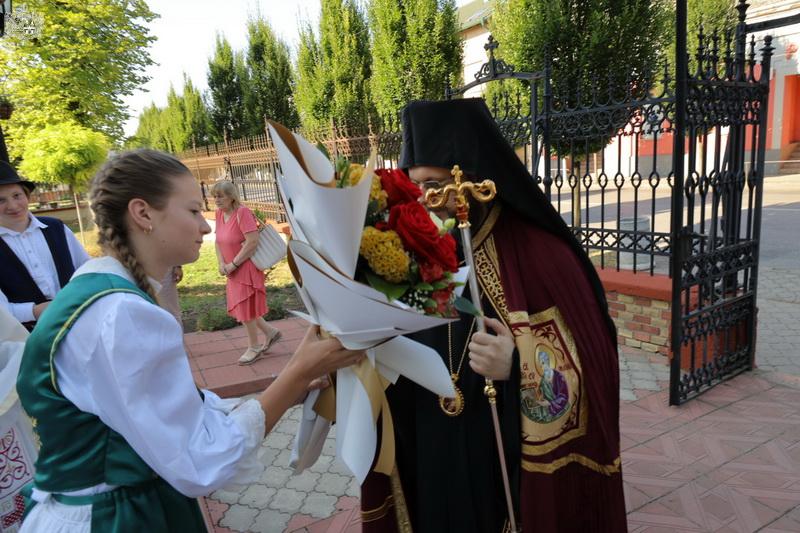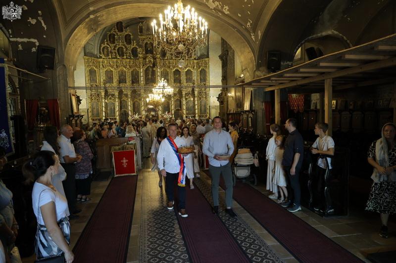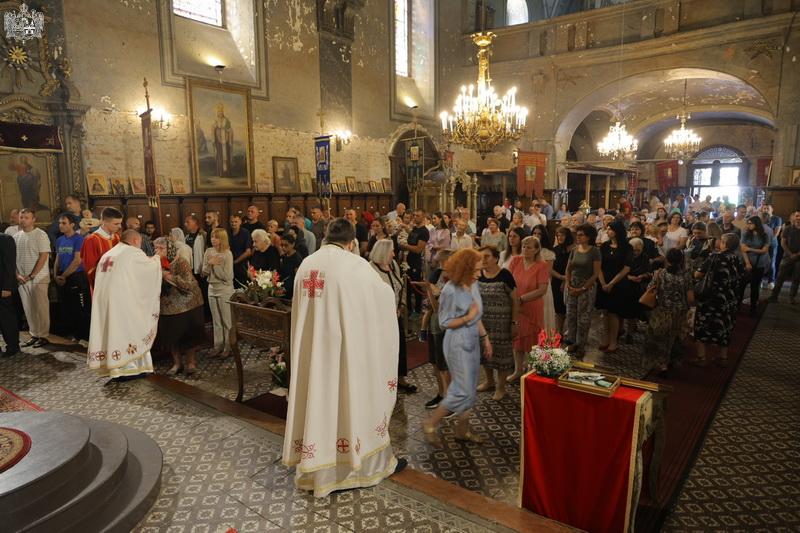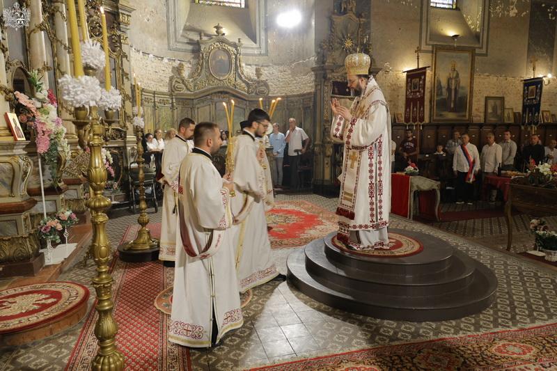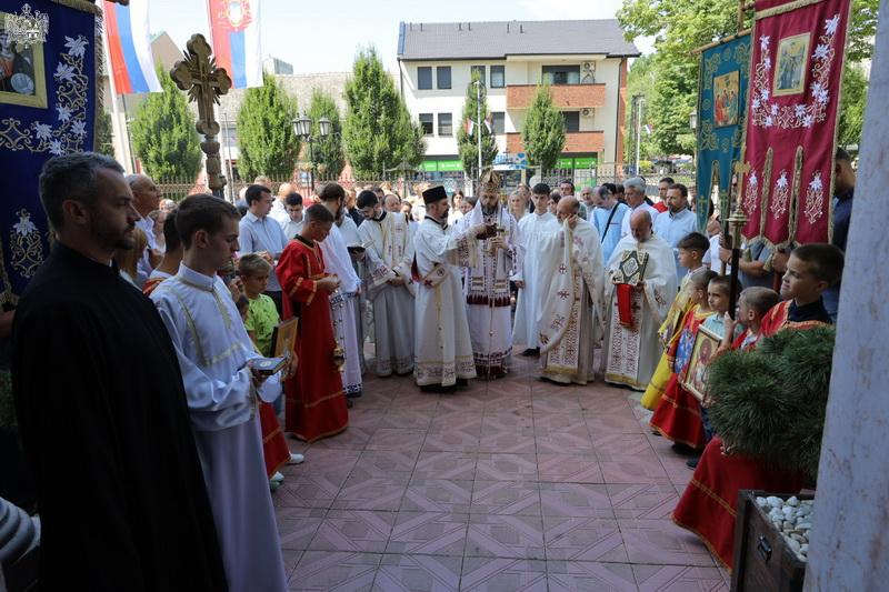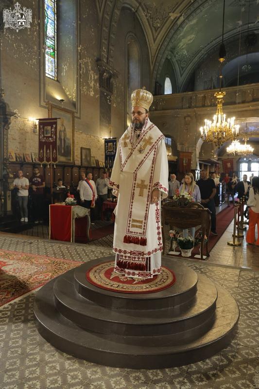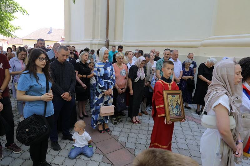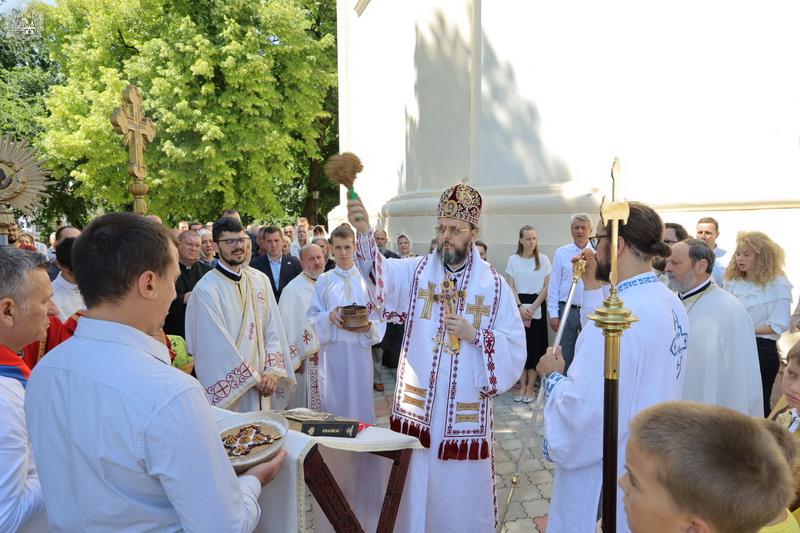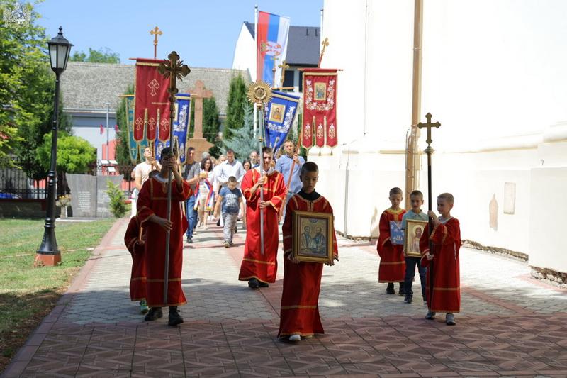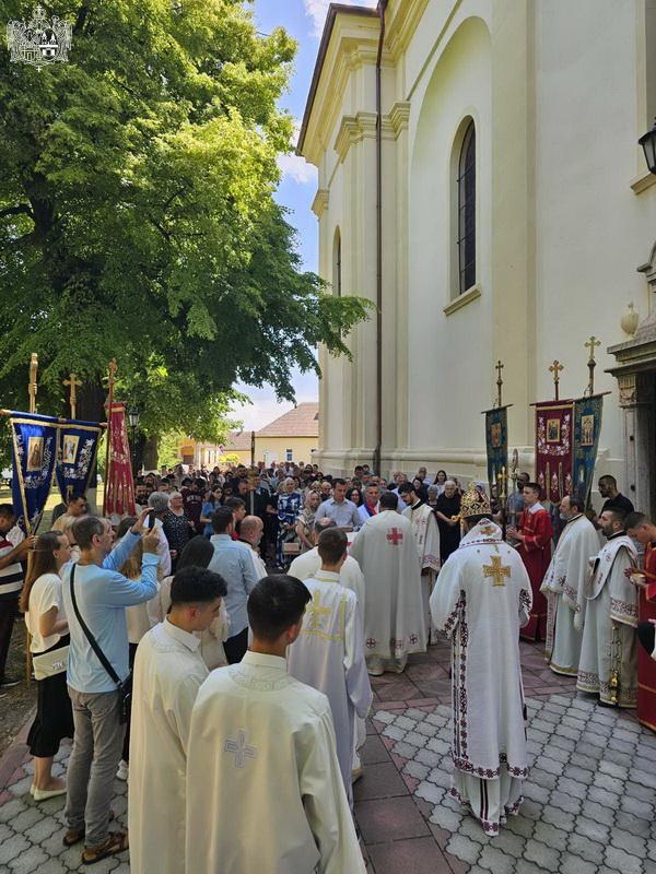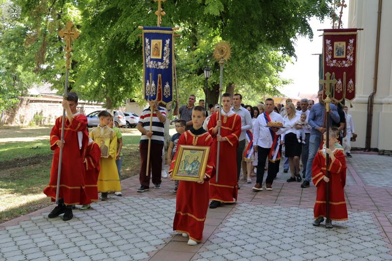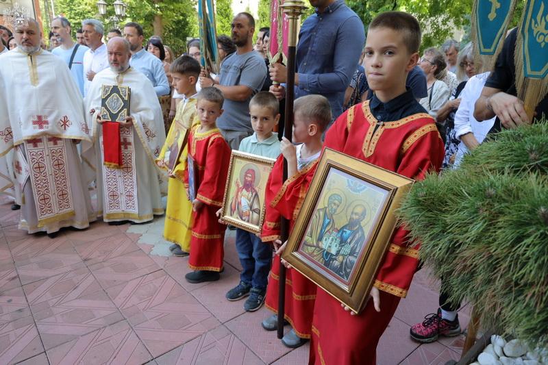 На дан празника, светом Литургијом је началствовао Његово Преосвештенство Епископ мохачки господин Дамаскин, викар Митрополита бачког, уз саслужење свештенства Епархије бачке. У беседи после прочитаног јеванђелског зачала, епископ Дамаскин је поучио сабране вернике о животу светих првоврховних апостола Петра и Павла, те је, између осталог, рекао: „Видимо два апостола, два човека као што смо и ми, од крви и од тела, веома различита и по свом пореклу, и по сталежу којем су припадали, и по образовању. Aли, вера Христова, нада у Христа и љубав Христова учиниле су да су они, ставивши Христа на прво место у свом животу, били управо блиски, јер је био близак Христос Који је живео у њиховим срцима, Који је живео у њиховој души, Који је живео у њиховим телима. Зато и ми који смо данас дошли на ову свету Литургију – припремајући се постом, молитвом и свим другим хришћанским врлинама да би се сјединили са Господом – пре самога Причешћа чућемо речи молитве светог Јована Златоуста, који каже управо речи које је изговорио свети апостол Петар: Верујем, Господе, и исповедам да си ти заиста Христос, Син Бога Живога. Сви ми ћемо исповедити те речи поново. Нека би молитве светих првоврховних апостола Петра и Павла, којима одајемо исту част и поштовање, учиниле да и ми имамо исту такву веру, веру коју ћемо сведочити пред свим другим људима; да имамо исто такво поуздање у Бога које су они имали и да имамо исту такву љубав у Бога као што су и они имали, јер су били спремни и крв своју да дају и живот свој за свога Спаситеља.ˮ