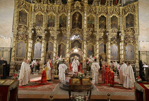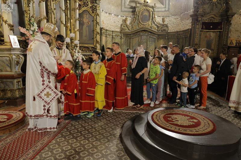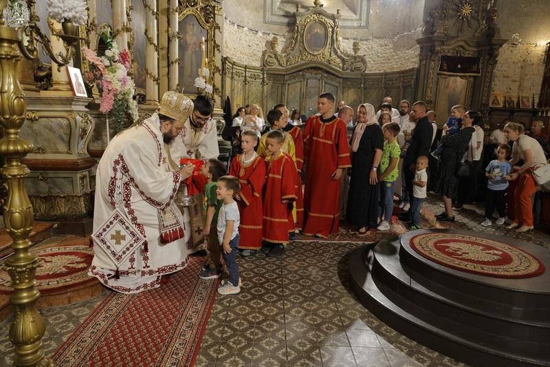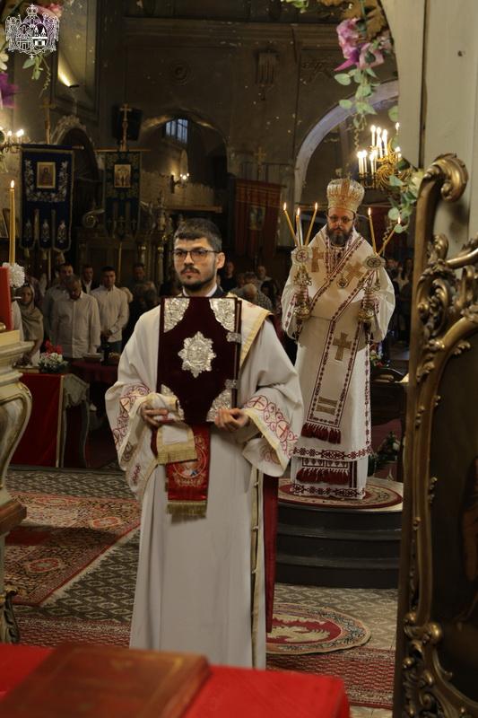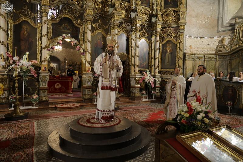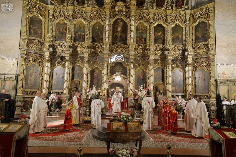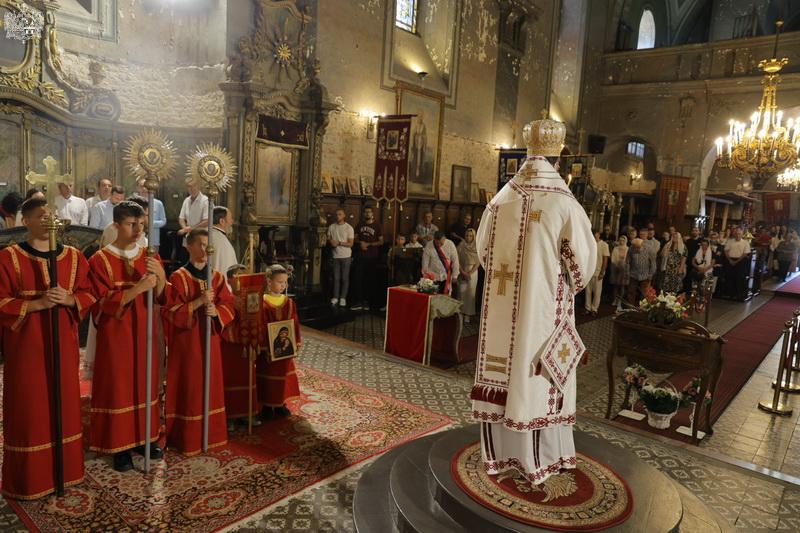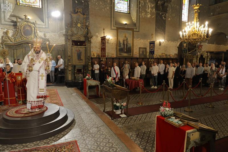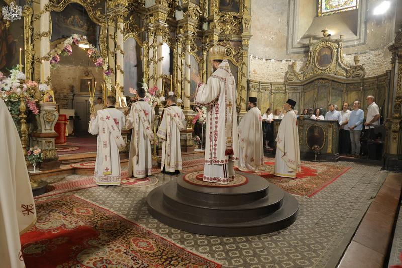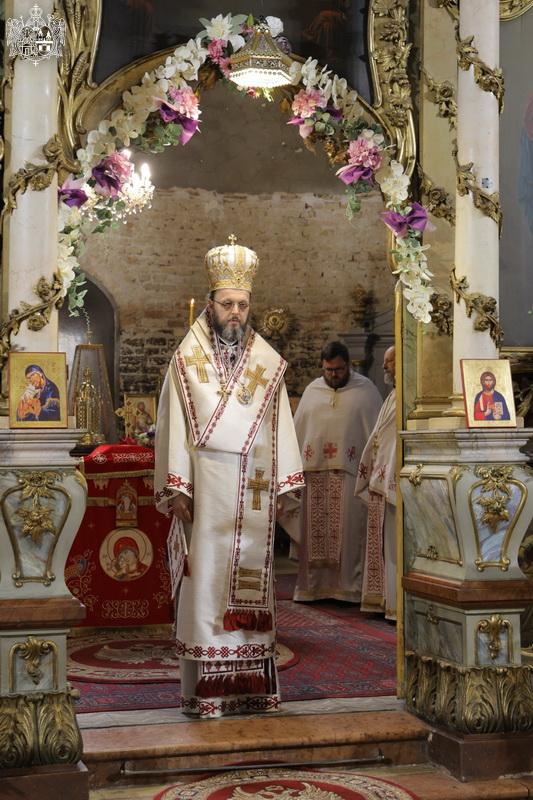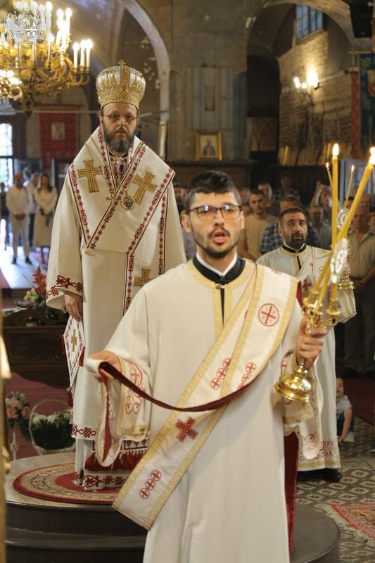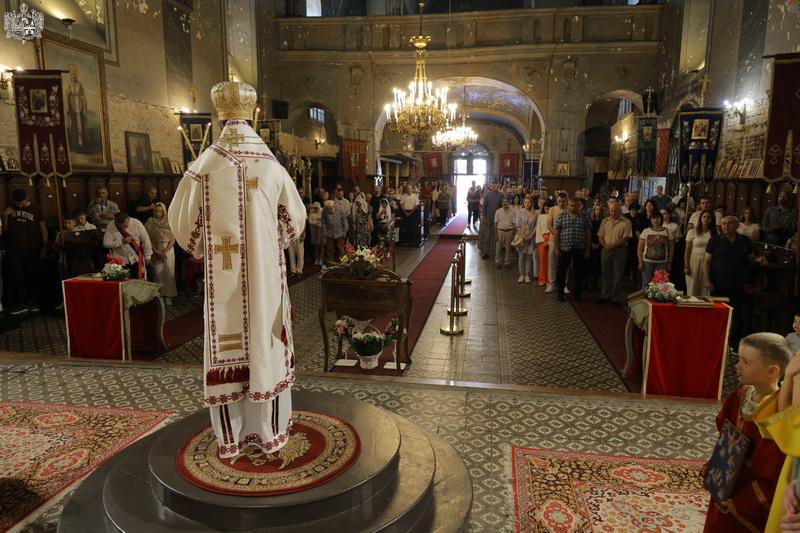 На дан празника, светом Литургијом је началствовао Његово Преосвештенство Епископ мохачки господин Дамаскин, викар Митрополита бачког, уз саслужење свештенства Епархије бачке. У беседи после прочитаног јеванђелског зачала, епископ Дамаскин је поучио сабране вернике о животу светих првоврховних апостола Петра и Павла, те је, између осталог, рекао: „Видимо два апостола, два човека као што смо и ми, од крви и од тела, веома различита и по свом пореклу, и по сталежу којем су припадали, и по образовању. Aли, вера Христова, нада у Христа и љубав Христова учиниле су да су они, ставивши Христа на прво место у свом животу, били управо блиски, јер је био близак Христос Који је живео у њиховим срцима, Који је живео у њиховој души, Који је живео у њиховим телима. Зато и ми који смо данас дошли на ову свету Литургију – припремајући се постом, молитвом и свим другим хришћанским врлинама да би се сјединили са Господом – пре самога Причешћа чућемо речи молитве светог Јована Златоуста, који каже управо речи које је изговорио свети апостол Петар: Верујем, Господе, и исповедам да си ти заиста Христос, Син Бога Живога. Сви ми ћемо исповедити те речи поново. Нека би молитве светих првоврховних апостола Петра и Павла, којима одајемо исту част и поштовање, учиниле да и ми имамо исту такву веру, веру коју ћемо сведочити пред свим другим људима; да имамо исто такво поуздање у Бога које су они имали и да имамо исту такву љубав у Бога као што су и они имали, јер су били спремни и крв своју да дају и живот свој за свога Спаситеља.ˮ