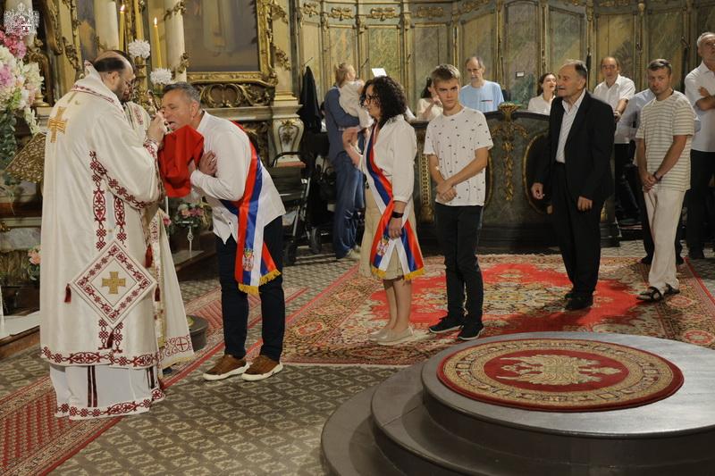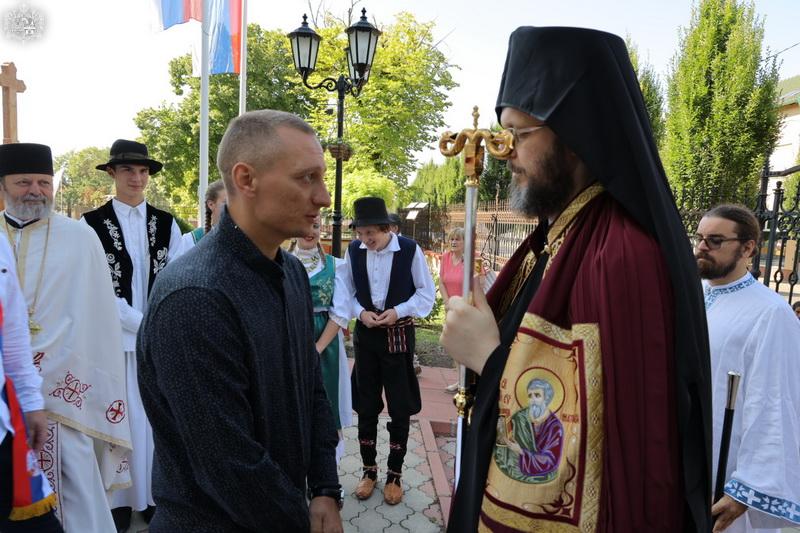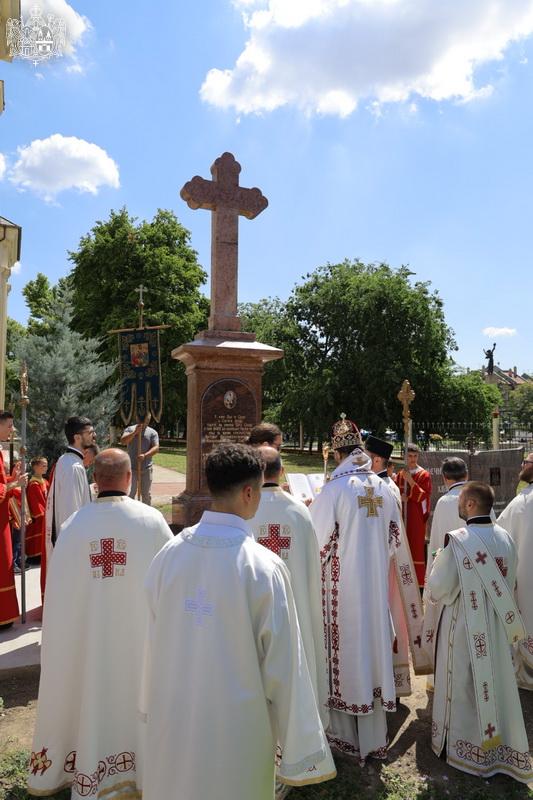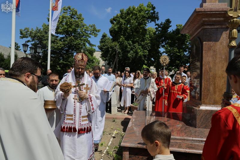 После свете Литургије, епископ Дамаскин, уз саслужење свештенства Епархије бачке, у порти храма је извршио чин освећења крсног знамења – обновљеног споменика Србобранцима погинулим током Буне 1848/1849. године. У наставку је епископ Дамаскин извршио чин освећења потпуно обновљеног парохијског дома.