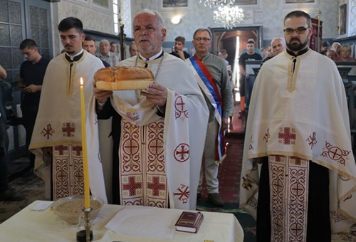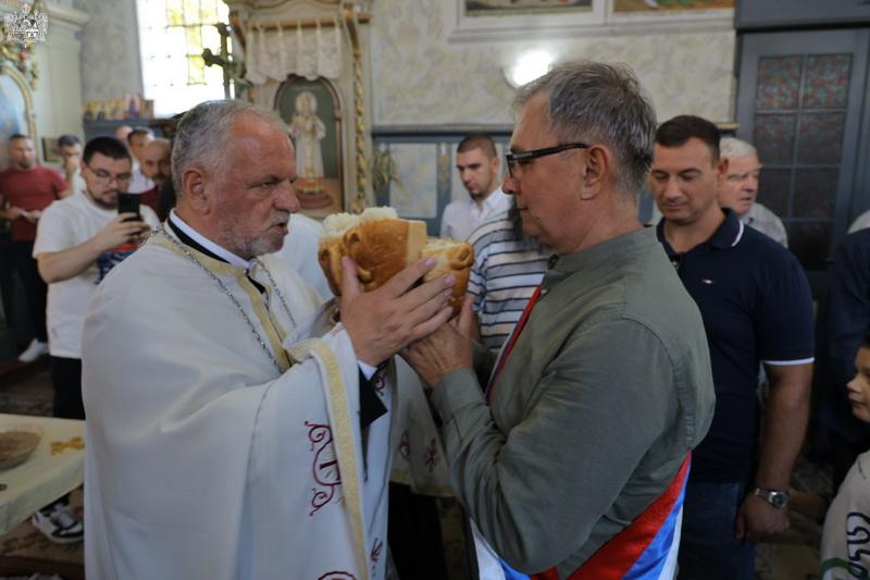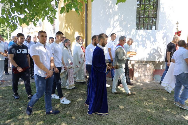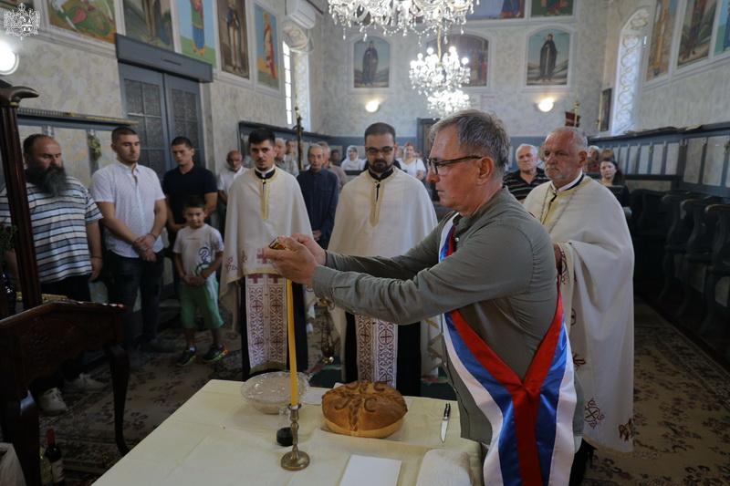 Вечерњим богослужењем и чином благосиљања славских дарова је началствовао протојереј-ставрофор Стојан Билић, парох новосадски. Пригодном беседом се обратио презвитер Петар Николић, парох младеновљански. Овогодишњи кум био је Здравко Јаћимовић, а залог кумства за следећу годину преузео је Владимир Максимовић из Обровца.