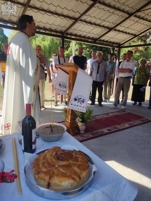 После прочитаног јеванђелског одељка, отац Дејан је произнео пригодну беседу и сабраном верном народу честитао славу параклиса. По заамвоној молитви је извршен трократни опход око параклиса са поменом ктиторима, свештенослужитељима и парохијанима. После свете Литургије извршен је чин благосиљања славских дарова које је принео г. Драган Бореновић, овогодишњи кум. Залог кумства за следећу годину примио је г. Славиша Филиповац.