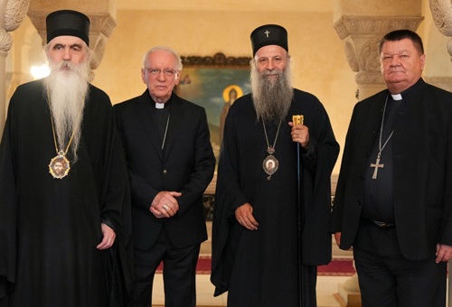 Његова Светост Патријарх српски г. Порфирије, заједно са Његовим Високопреосвештенством Митрополитом бачким г. Иринејем, чланом Светог Архијерејског Синода, разговарао је 21. августа 2025. године у Патријаршијском двору у Београду са монсињором Вјекославом Хузјаком, Бискупом бјеловарско-крижевачким и председником Бискупске комисије Хрватске бискупске конференције за екуменизам, и монсињором Антуном Шкворчевићем, пожешким бискупом емеритусом, претходним дугогодишњим председником Већа за екуменизам Хрватске бискупске конференције.