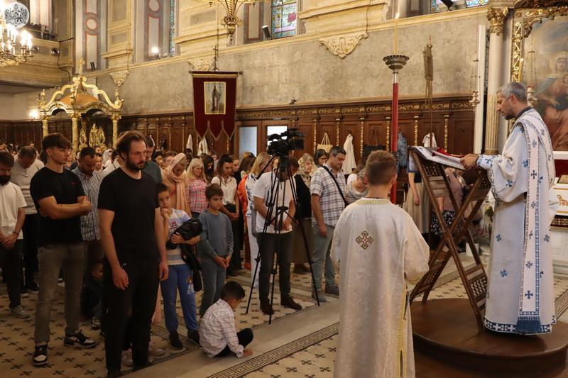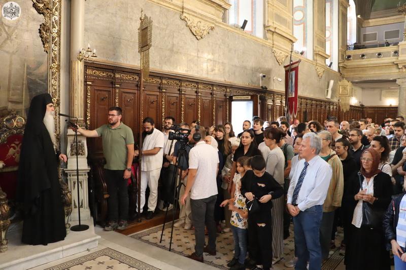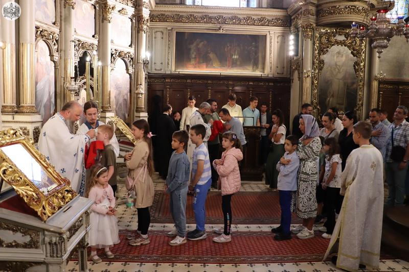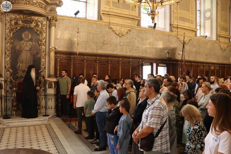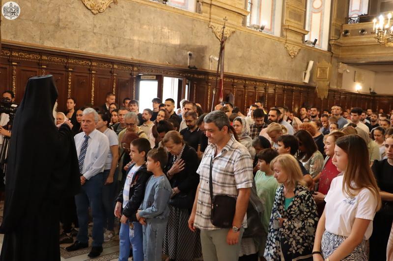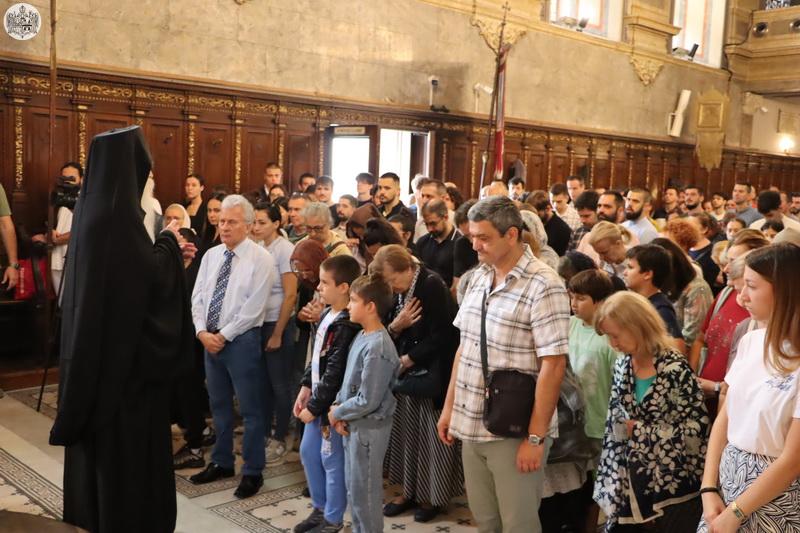 По завршетку свете Литургије, Високопреосвећени митрополит Иринеј је верном народу честитао празник, а деци и омладини је пожелео срећну и благословену нову школску годину.