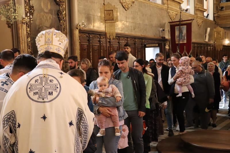 По завршетку свете Литургије, Високопреосвећени митрополит Иринеј је честитао празник верноме народу, а члановима хора Школе појања „Свети Јован Дамаскинˮ при Црквеној општини новосадској, који су појали на Литургији, захвалио на труду, пожелевши свим полазницима Школе појања успех у полагању испитâ и даљем усавршавању.