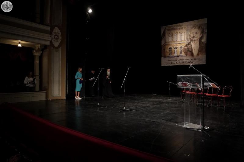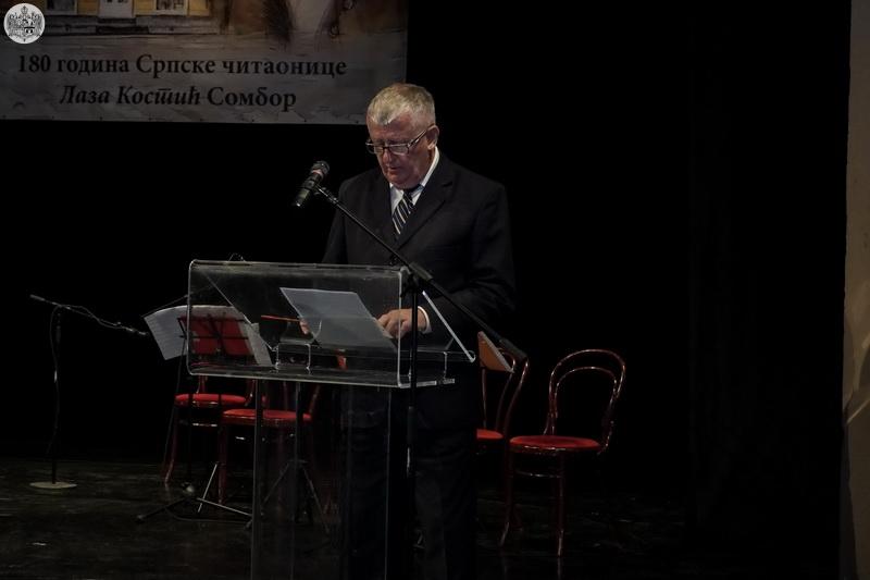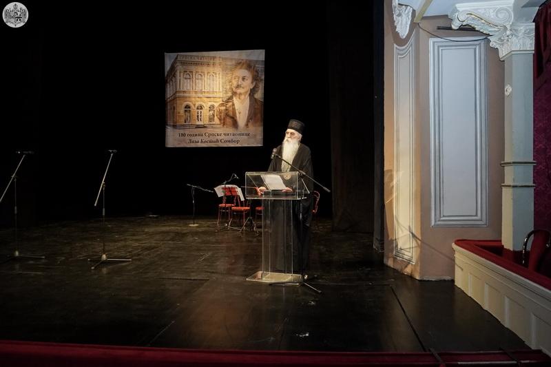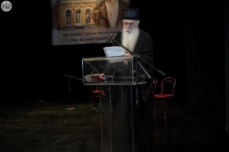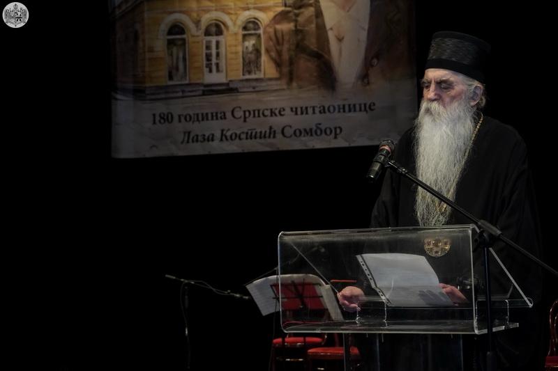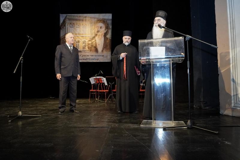 На почетку свечане академије наступио је црквени хор „Свети цар Константин и царица Јеленаˮ, којим диригује господин Милан Радишић, а затим је поздравне речи упутио господин Борислав Аврамовић, председник Управног одбора Српске читаонице „Лаза Костићˮ. Потом се присутнима обратио Његово Високопреосвештенство Митрополит бачки господин др Иринеј, који је члановима Српске читаонице у Сомбору честитао јубилеј и пренео благослов и молитвене поздраве Светејшег Патријарха српског господина Порфирија. „Радујем се и Богу благодарим што данас могу заједно са свима вама овде сабранима да учествујем у прослави лепог јубилеја – сто осамдесете годишњице постојања и плодног делања ове значајне и знамените установе нашег народа и културе, али, на својеобразан начин, и наше Српске Православне Цркве. Уверен сам да Српска читаоница у Сомбору јесте својеобразни храм идентитета нашег народа, његове културе, али и његове вере и традиције пре свега и да је и она на свој начин храм Божје Премудрости. Српска читаоница није, по моме скромном уверењу, једноставно књигохранилиште, како се некада говорило, тојест неко складиште књига, маколико оне биле вредне, или место на којем се читају књиге. Она је много више од тогаˮ, нагласио је митрополит Иринеј.