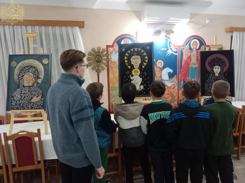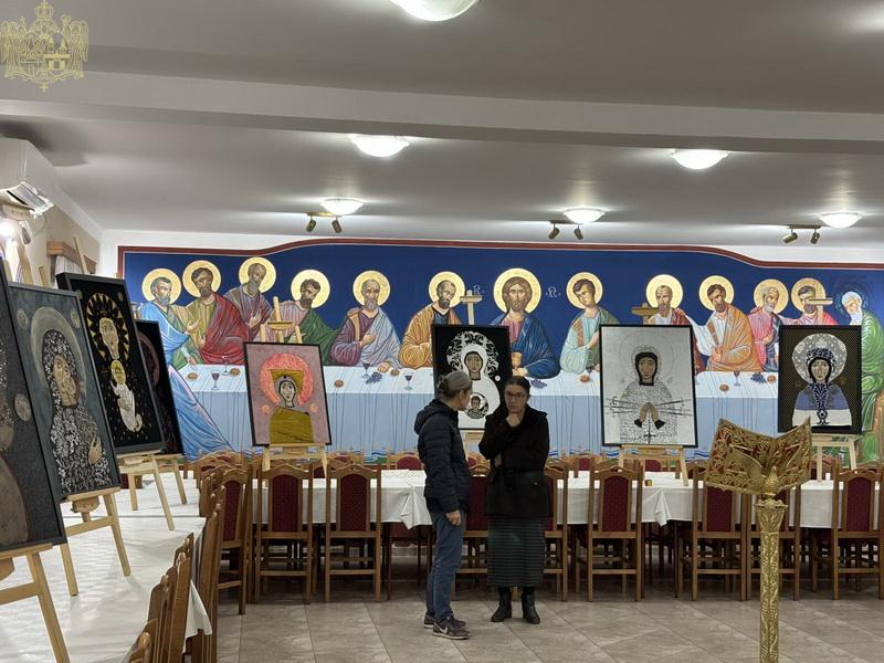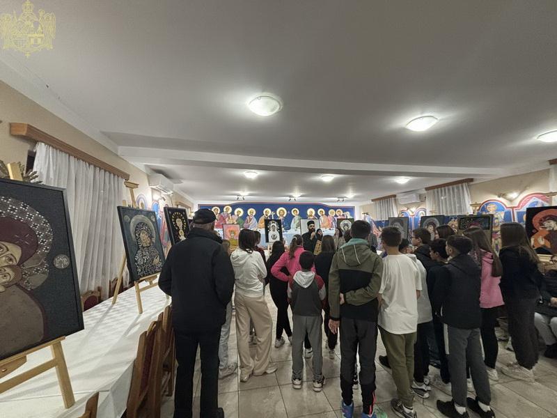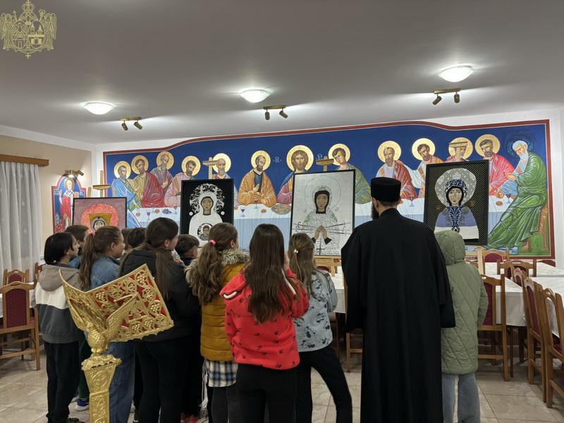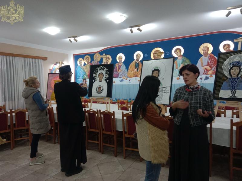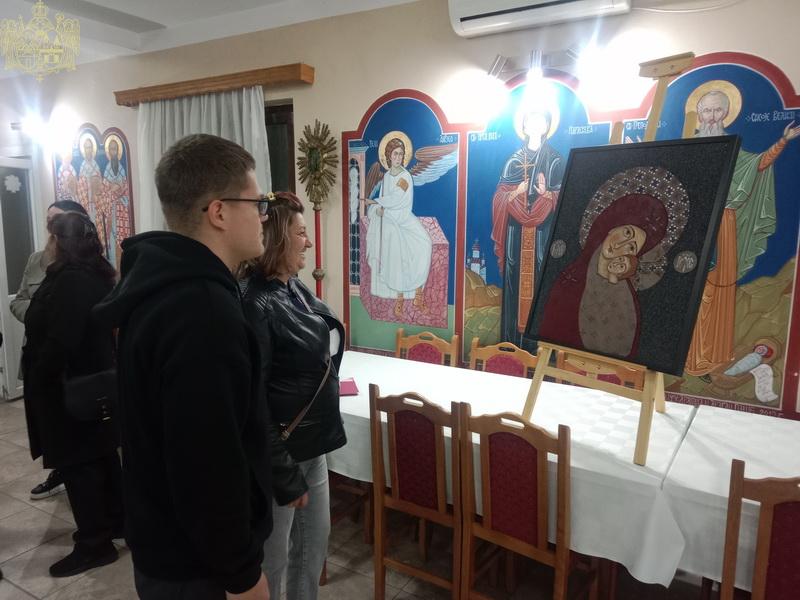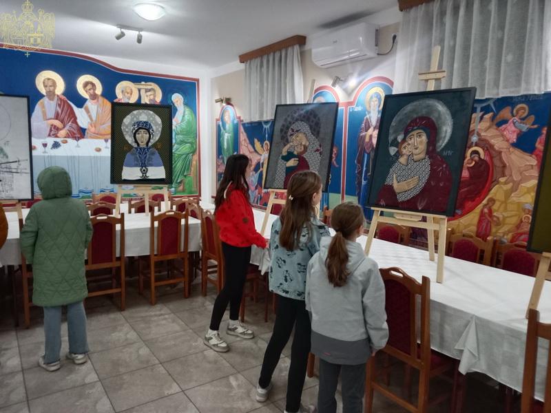 Изложбу су посетили и ученици Основне школе „Јован Јовановић Змајˮ у Ђурђеву, предвођени својим вероучитељем. Ове иконе, настале шивењем и везом, у великој мери прате традиционални иконописачки канон и верне су светом Предању, а у исто време доносе новине у иконописачку праксу Цркве.