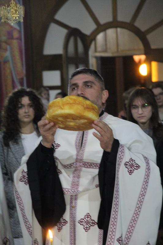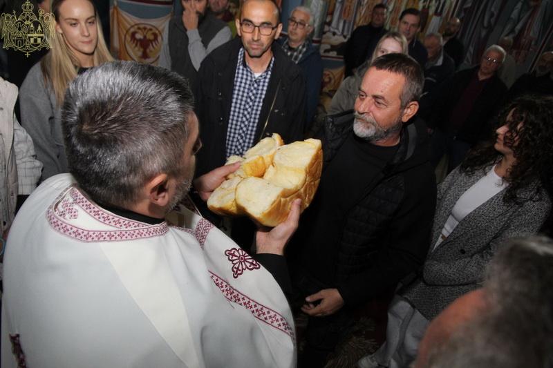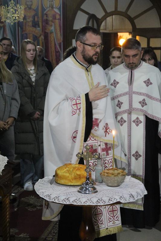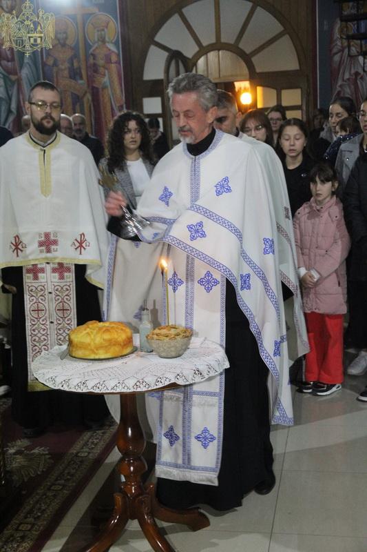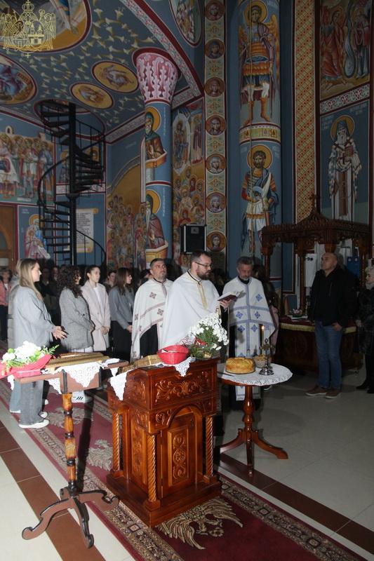 Вечерњим богослужењем на којем су благосиљани славски дарови, началствовао је презвитер Стефан Тубић, парох темерински, уз саслужење презвитера Николе Дувњака, пароха темеринског, и протојереја Јована Кисина, пароха сиришког. Кумови овогодишње славе хора били су господа Милован Кузмановић и Синиша Митровић. Кумство за следећу годину су преузеле госпође Снежана Егељић и Љепосава Кисин.