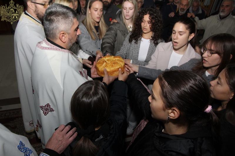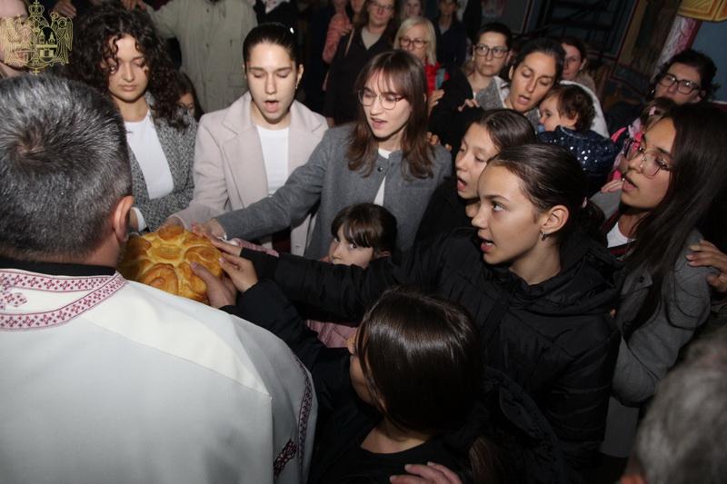 На дан празника, свету Литургију је служио протојереј Јован Кисин, парох сиришки. Прота Јован је у беседи хору честитао славу и нагласио да је дечји хор све познатији, захваљујући вољи и преданости деце и труду диригента госпође Невене Шкрбић.