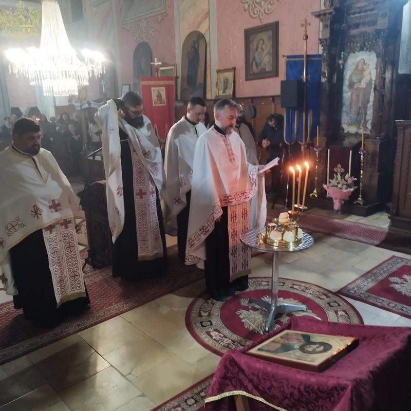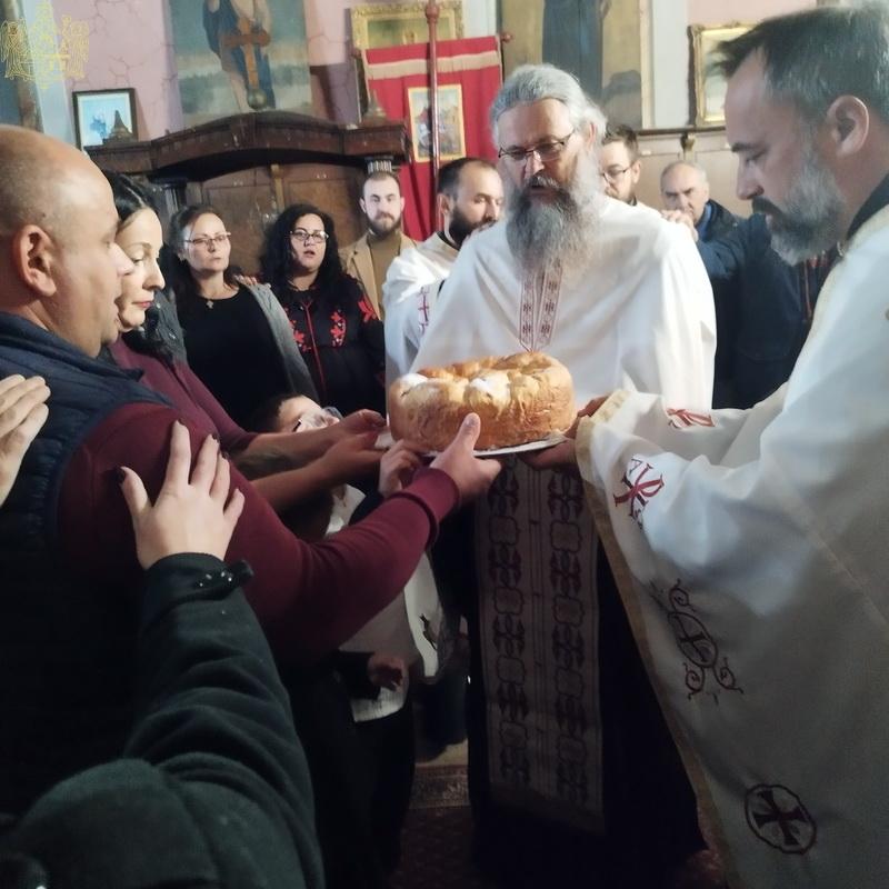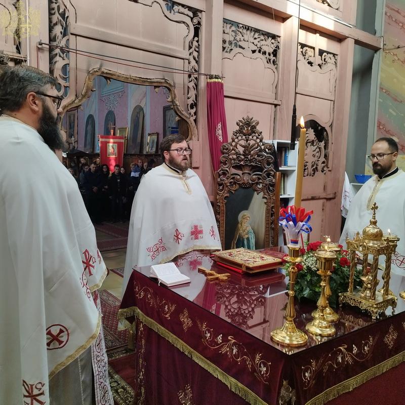 Вечерњим богослужењем и чином благосиљања славских дарова началствовао је јеромонах Николај, сабрат Светоархангелског манастира у Ковиљу, уз саслужење свештенства Епархије бачке. Кумство за идућу годину прихватила је госпођа Габријела Миловац из Доњег Ковиља.