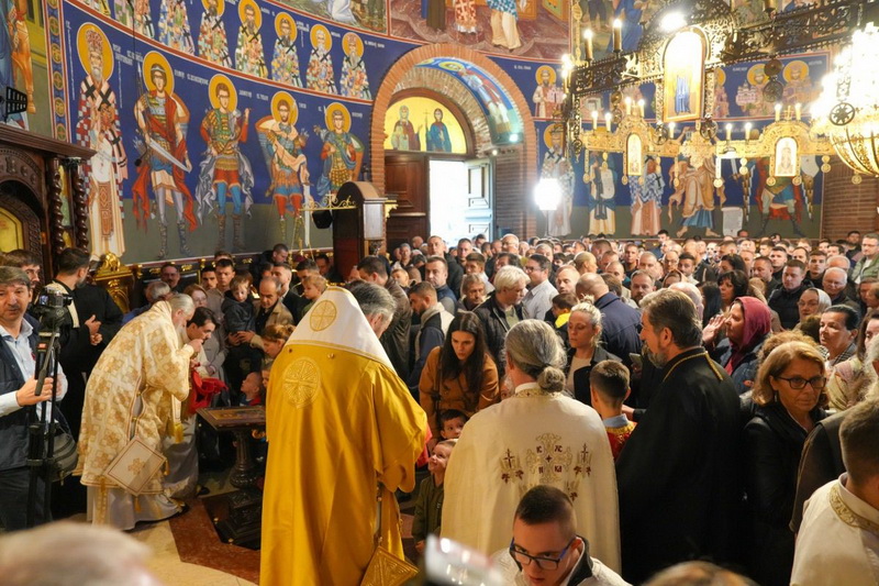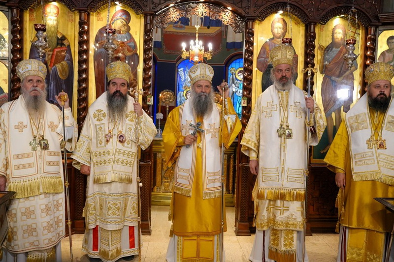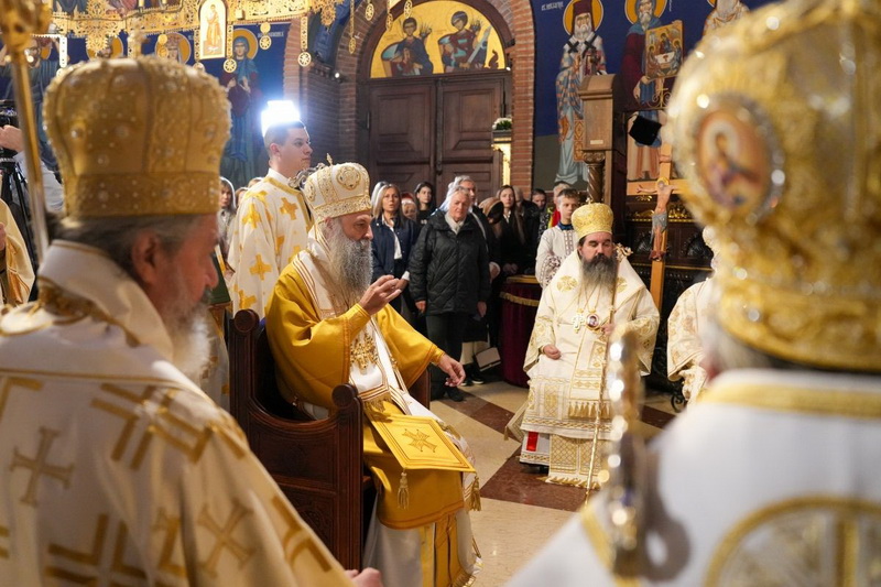 Његова Светост Патријарх српски г. Порфирије је началствовао 26. октобра 2025. године светом архијерејском Литургијом у цркви Светог Василија Острошког на Бежанијској коси.