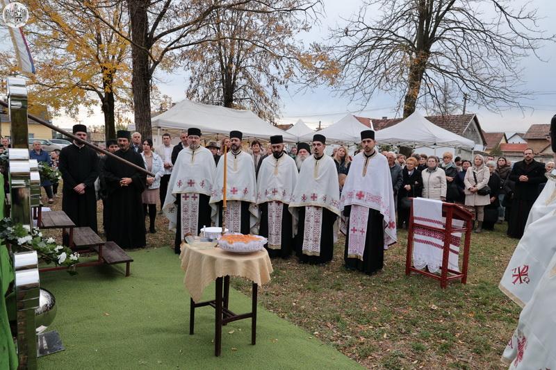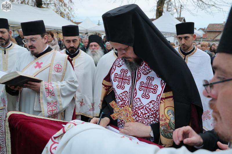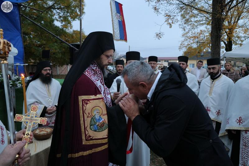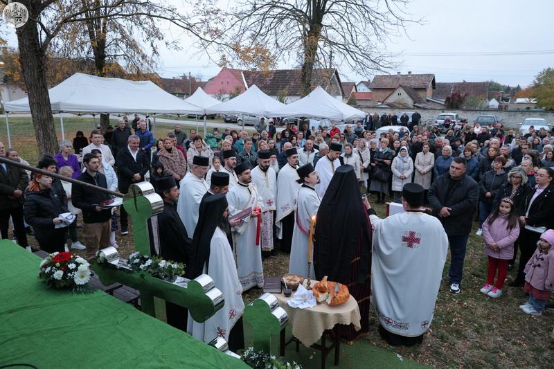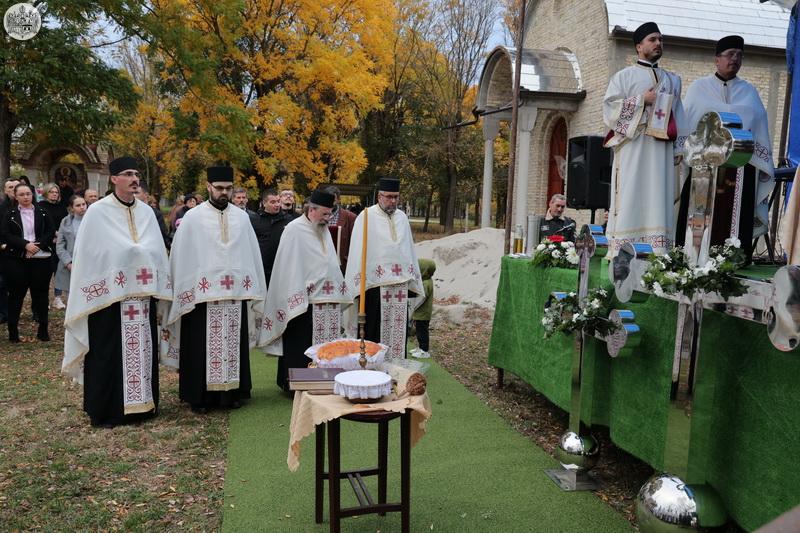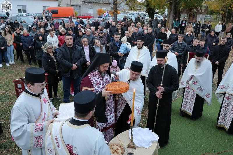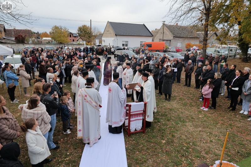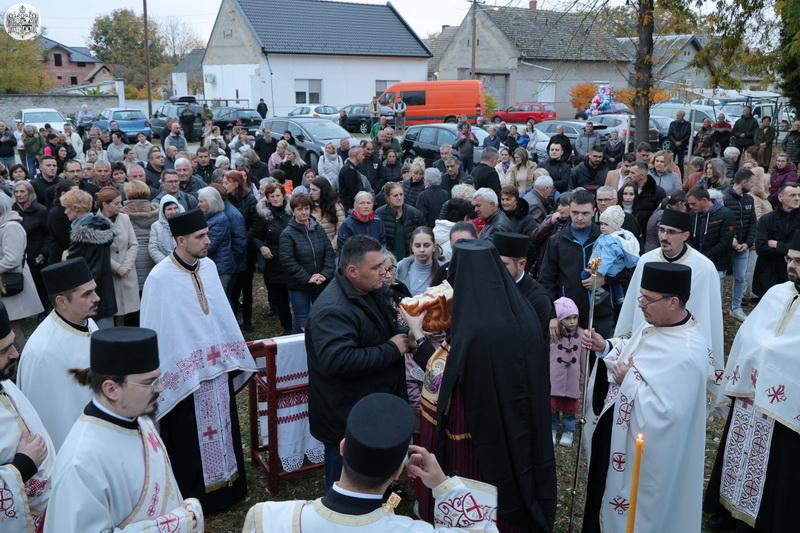 Обраћајући се верном народу, владика Дамаскин је пренео благослов Његовог Високопреосвештенства Митрополита бачког господина др Иринеја и поздравио све присутне. У наставку, Епископ мохачки је поучио верни народ о значају часног крста и, између осталог, рекао: „Пролазећи поред овога храма, а видећи ускоро на њему крстове, сетићемо се и подсетићемо се, али и учићемо се колика је љубав Божја према роду људскоме, да је Син Божји управо крст, који је био знак поруге у Римскоме Царству, учинио символом хришћанства, јер је он постао жртвеник на којем је Он принео Самога Себе на жртву. Тако ћемо увек знати да је крст знак саможртвене и велике и свете и благословене љубави Божје, а ми ћемо знати да и ми у нашем животу исто тако морамо да имамо ту љубав која је саможртвена, јер само таква љубав водиће нас ка васкрсењу. А управо у светоме храму, где се одвијају молитвословља, свете службе и свете Тајне, улазићемо у сусрет, у загрљај – и најважније – у сједињење са Богом у светој Тајни Евхаристије. Даће Бог да се овде створи једна лепа литургијска заједница у овоме светоме храму посвећеном светој Петки, јер и света Петка, када је имала десет година, била је са својом мајком у храму и тада је чула речи Јеванђеља: Ко жели да иде за мном, нека се одрекне себе и узме крст свој и иде за мном. Она је прихватила те речи у срце своје и читав свој живот је посветила Богу.ˮ