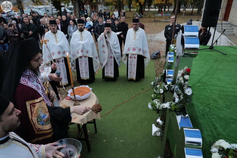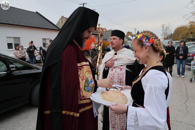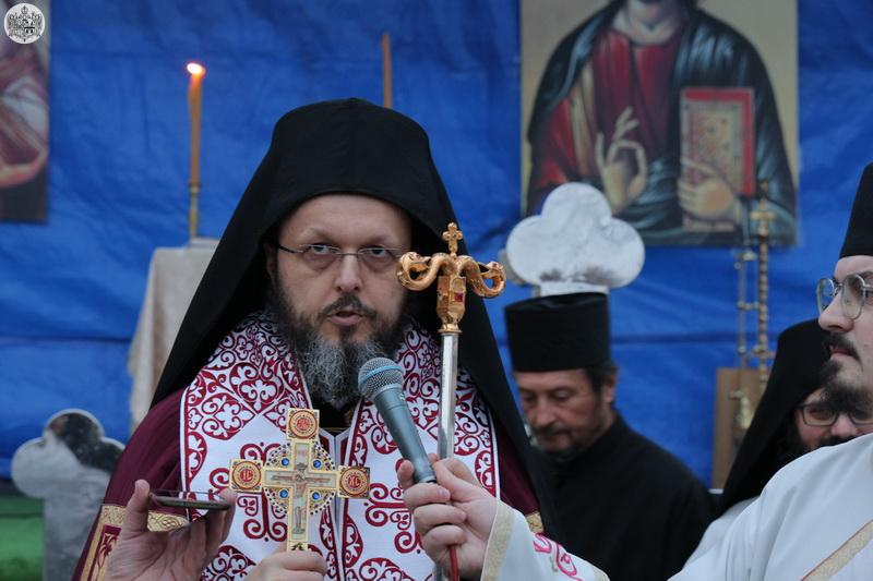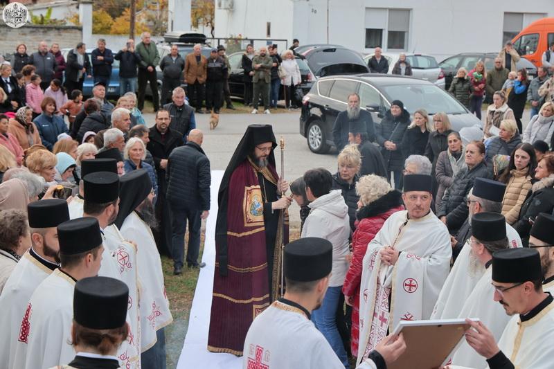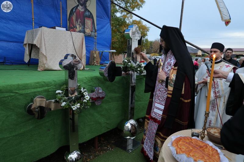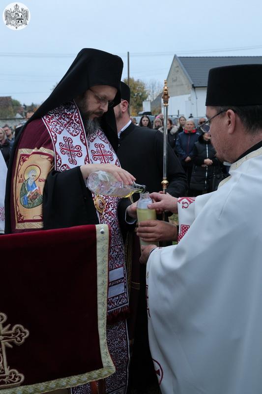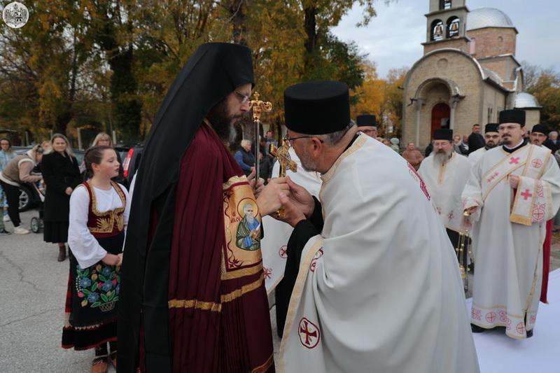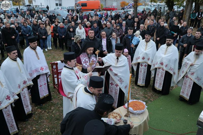 Обраћајући се верном народу, владика Дамаскин је пренео благослов Његовог Високопреосвештенства Митрополита бачког господина др Иринеја и поздравио све присутне. У наставку, Епископ мохачки је поучио верни народ о значају часног крста и, између осталог, рекао: „Пролазећи поред овога храма, а видећи ускоро на њему крстове, сетићемо се и подсетићемо се, али и учићемо се колика је љубав Божја према роду људскоме, да је Син Божји управо крст, који је био знак поруге у Римскоме Царству, учинио символом хришћанства, јер је он постао жртвеник на којем је Он принео Самога Себе на жртву. Тако ћемо увек знати да је крст знак саможртвене и велике и свете и благословене љубави Божје, а ми ћемо знати да и ми у нашем животу исто тако морамо да имамо ту љубав која је саможртвена, јер само таква љубав водиће нас ка васкрсењу. А управо у светоме храму, где се одвијају молитвословља, свете службе и свете Тајне, улазићемо у сусрет, у загрљај – и најважније – у сједињење са Богом у светој Тајни Евхаристије. Даће Бог да се овде створи једна лепа литургијска заједница у овоме светоме храму посвећеном светој Петки, јер и света Петка, када је имала десет година, била је са својом мајком у храму и тада је чула речи Јеванђеља: Ко жели да иде за мном, нека се одрекне себе и узме крст свој и иде за мном. Она је прихватила те речи у срце своје и читав свој живот је посветила Богу.ˮ