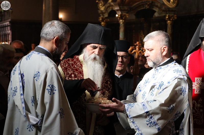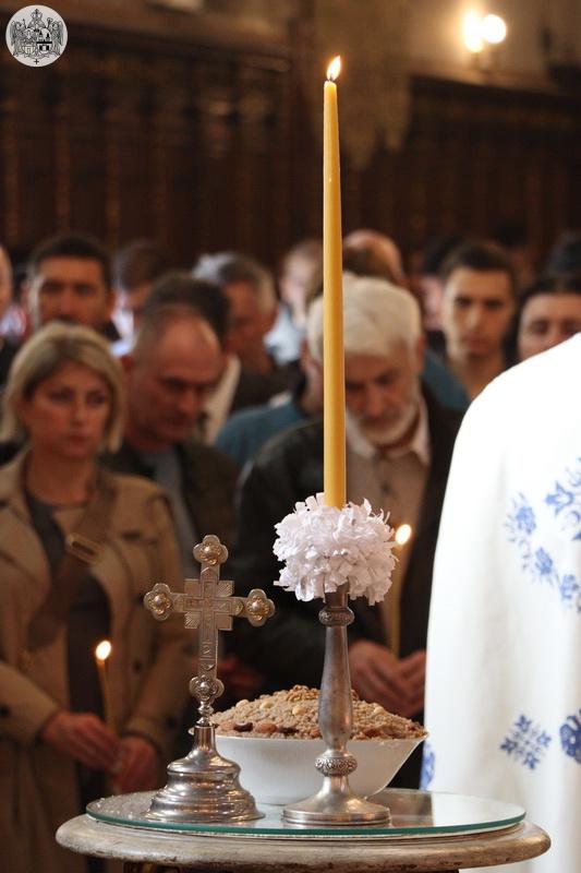 После отпуста свете Литургије, Високопреосвећени владика Иринеј се обратио присутнима и, између осталог, рекао: „Драга браћо и сестре, као и свих претходних година, и ове године на данашњи дан, који наш народ зове Задушнице, тојест дан молитве за душе упокојених, принели смо и ми молитве за све од памтивека упокојене. Уз сва та имена поменути су и наша браћа и сестре пострадали пре годину дана на данашњи дан у нашем граду. Наравно, ми их помињемо непрекидно, свакога дана на богослужењу, а на светој Литургији посебно током ове прве године од њиховог страдања и упокојења. Биће помињани и убудуће на проскомидији, на самом почетку свете Литургије, и у току Литургије. У сваком случају, молитва је неопходна, а исто тако нада на Господа и наше је чврсто уверење – управо на основу наше вере, на основу Јеванђеља – да они који невино страдају нису помрли, нису отишли ни у какво ништавило, него да их је Господ примио у Своје вечно наручје, у Своју вечну и неразориву заједницу љубави са свима спасенима и светима. Нека њима Господ дарује Царство небеско, а вама свима и свим људима, свему роду људскоме, сваки благослов и свако вечно добро!ˮ