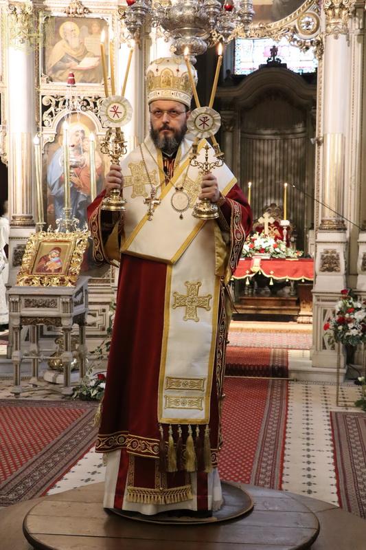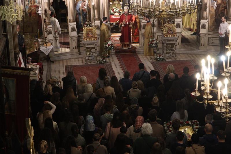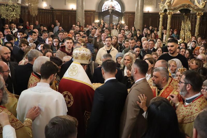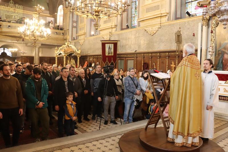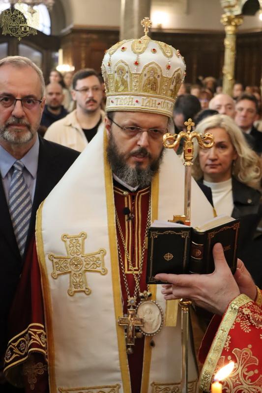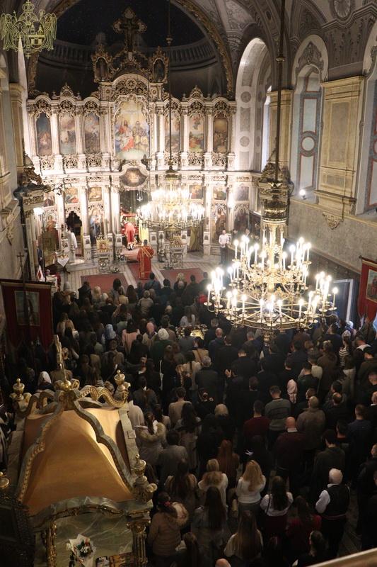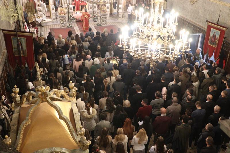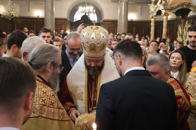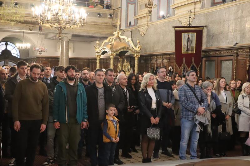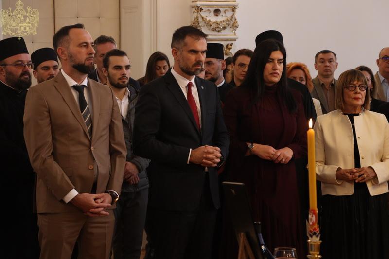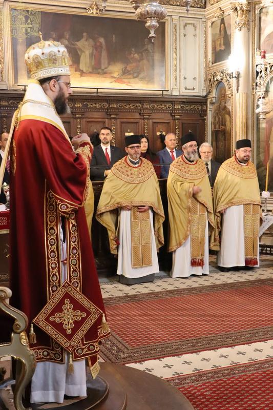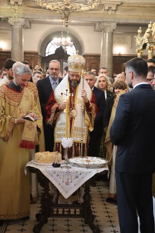 Светој Литургији у Саборном храму су присуствовали: госпођа Маја Гојковић, председница Покрајинске владе, г. Жарко Мићин, градоначелник Новог Сада, г. Ђурађ Јакшић, заменик градоначелника Новог Сада, госпођа Дина Вучинић, председница Скупштине Града Новог Сада, г. Борис Думнић, декан Факултета техничких наука Универзитета у Новом Саду, кум овогодишње градске славе, професор др Драган Станић, председник Матице српске, др Весна Туркулов, директор Универзитетског клиничког центра Војводине, г. Петар Ђурђев, саветник градоначелника Града Новог Сада, г. Никола Перваз, председник Црквене општине новосадске и многи други представници друштвеног и културног живота Новог Сада. Благољепију свете Литургије допринели су својим појањем чланови хора „Свети Георгијеˮ при Саборном храму.