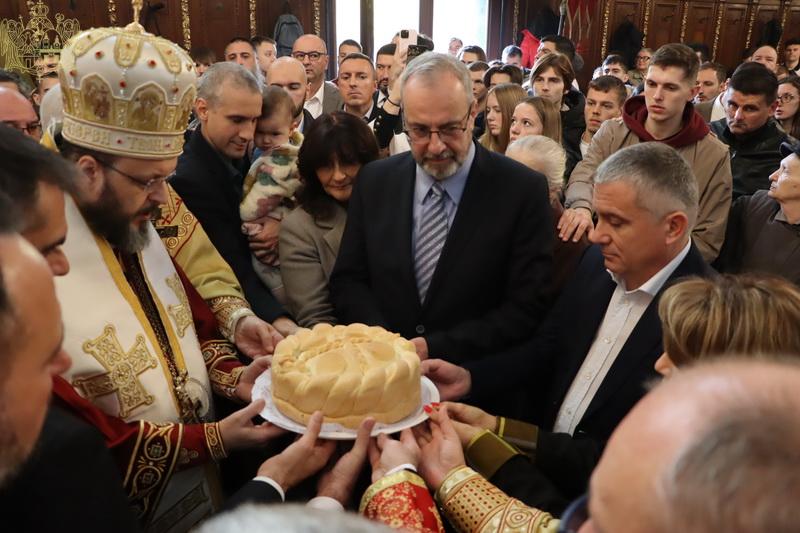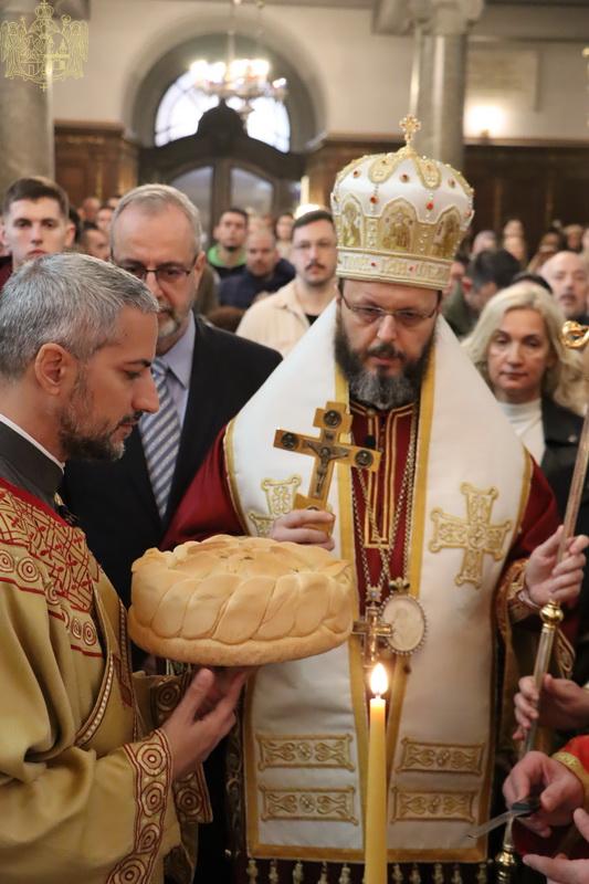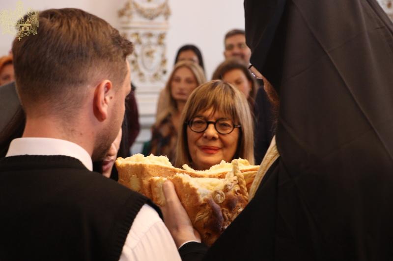После заамвоне молитве, Преосвећени владика Дамаскин је благословио славске дарове које су, у славу Божју, а у част светог великомученика Георгија, принели кумови Ранко и Јелка Рајовић са породицом. По отпусту свете Литургије, епископ Дамаскин је свима присутнима честитао празник, а свечарима славу, преневши благослов Високопреосвећеног Митрополита бачког др Иринеја.