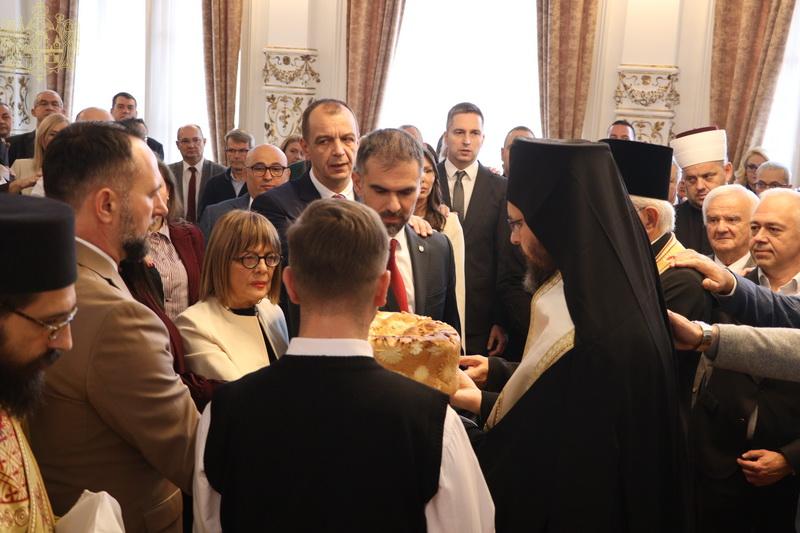 После свете Литургије, у свечаној дворани Градске куће у Новом Саду, Епископ мохачки г. Дамаскин је освештао славске дарове, уз саслужење протојереја-ставрофора Милоша Весина и ђакона Милована Крстића. После извршеног чина, владика Дамаскин је градоначелнику и сабранима пренео молитвене поздраве Његовог Високопреосвештенства Митрополита бачког господина др Иринеја и честитао им градску славу. Свечаности у Градској кући присуствовали су представници традиционалних Цркава и верских заједница, као и угледне личности културног и друштвеног живота Новог Сада.