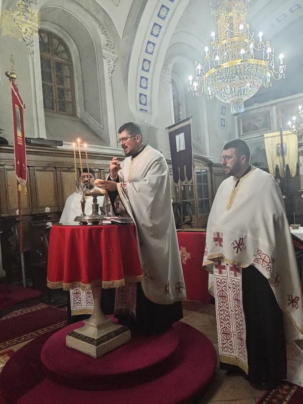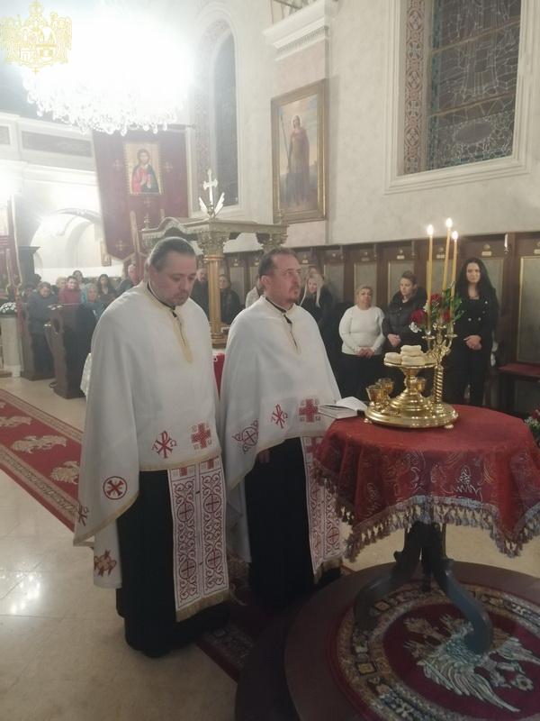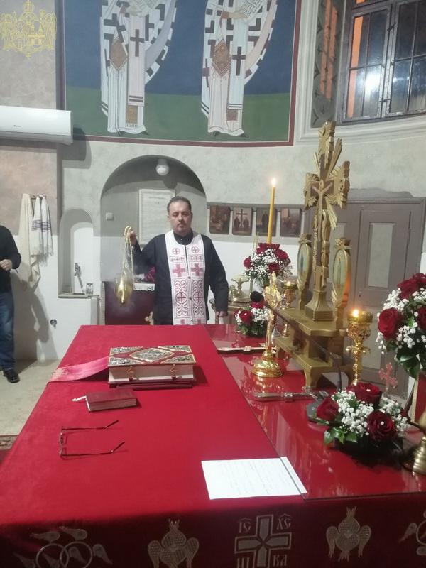 Вечерњим богослужењем је началствовао презвитер Дарко Ивковић, парох пачирски, уз саслужење свештенства и ђаконства Епархије бачке. На крају вечерњег богослужења извршен је чин благосиљања славских дарова које су припремили овогодишњи кумови Иван и Јована Доват са породицом. Кумство за следећу годину и залог славског колача преузела је породица Сочин из Сенте. На крају вечерњег богослужења отац Дарко се обратио надахнутом беседом сабраном народу и кумовима честитајући им славу. Вечерњем богослужењу су присуствовали представници Римокатоличке Цркве и представници локалне самоуправе.