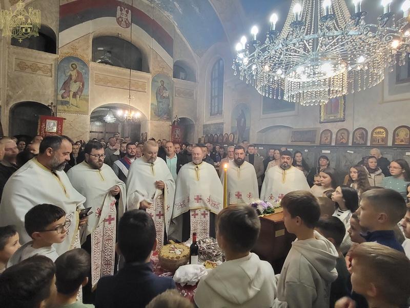 Вечерњим богослужењем са чином благосиљања славских дарова началствовао је протојереј Јован Кезан, парох оџачки, уз саслужење свештенства Епархије бачке. По завршетку богослужења, г. Борис Милутинов, кум овогодишње славе, предао је залог кумства за наредну годину г. Ђурађу Панићу. Сабраним верницима се пригодном беседом обратио протонамесник Перо Анђелић, архијерејски намесник жабаљски, и поучио их о смислу хришћанског живота. Прота је вернима честитао празник, а кумовима пожелео да их Господ чува молитвама светог краља Стефана Дечанског.