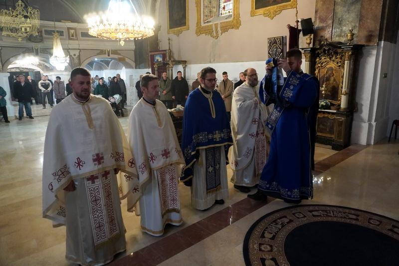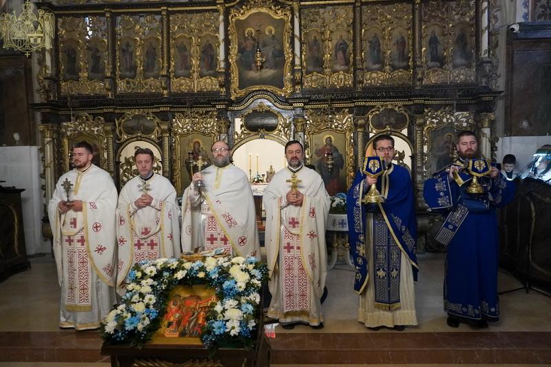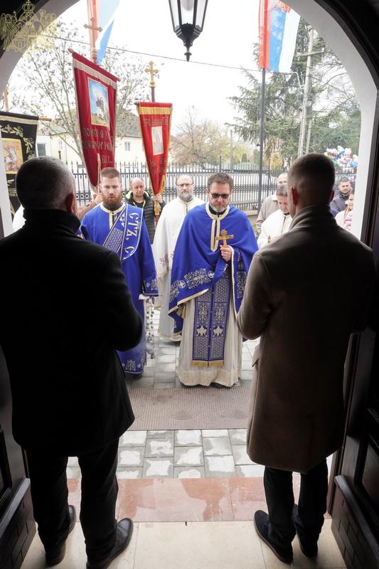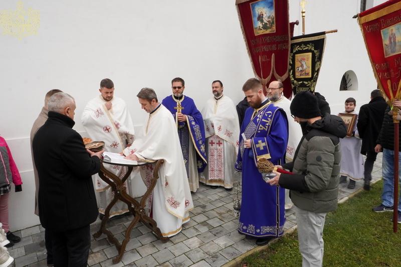 Вечерњим богослужењем је началствовао протојереј Бранислав Мркић, архијерејски намесник новосадски други, уз саслужење свештенства и ђакона Епархије бачке. После вечерњег је извршен чин благосиљања славских дарова које је принео славски кум г. Симо Јовишић са породицом. Презвитер Ђуро Родић је честитао породици Јовишић на кумству и захвалио свима који су узели учешћа у организацији и прослави храмовне славе. Залог кумства за следећу годину преузео је г. Дејан Милић.