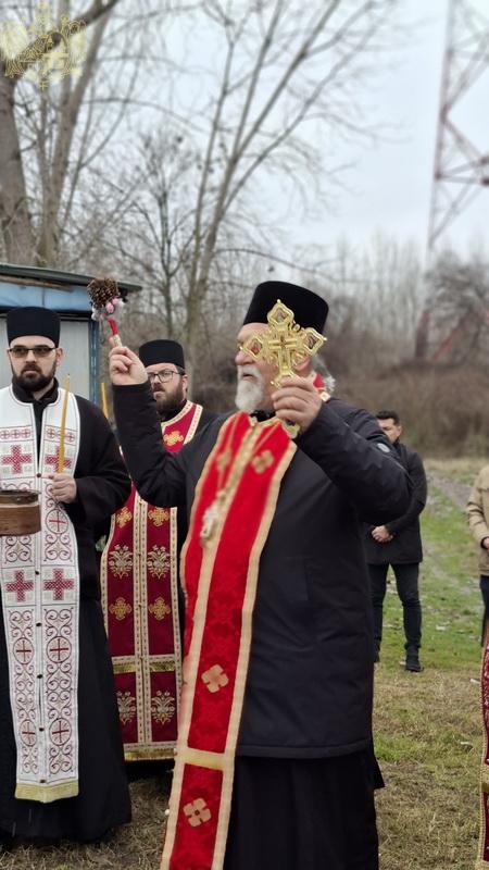 Чином освећења крста началствовао је протојереј-ставрофор Бранко Ћурчин, уз саслужење протојереја-ставрофора Радивоја Панића, пароха при Храму Светога Саве у Београду, протојереја-ставрофора Владана Симића, секретара Епархије бачке, протојереја-ставрофора Ивана Вачика, пароха у Гардиновцима, протонамесника Пере Анђелића, архијерејског намесника жабаљског, и презвитера Јована Вачика, пароха у Товаришеву.