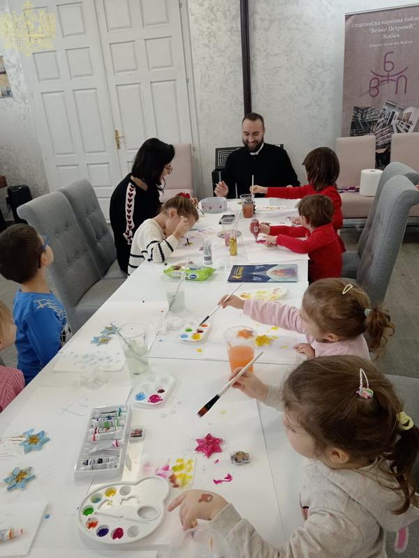 Са благословом Његовог Високопреосвештенства Митрополита бачког господина др Иринеја, у суботу, 3. јануара 2026. године, у просторијама Општинске народне библиотеке „Вељко Петровићˮ у Жабљу, одржана је радионица за децу предшколског узраста са темом „Рођење Сина Божјегˮ. Уз причу о звезди коју су пратили мудраци који су дошли да се поклоне Богомладенцу Христу, учеснике радиониц је водио ђакон Игор Раденовић из Жабља. Реализацији радионице су допринели Добрица Трнинић, васпитачица, и Варја Нешић, уредница културног програма Општинске народне библиотеке „Вељко Петровићˮ у Жабљу.