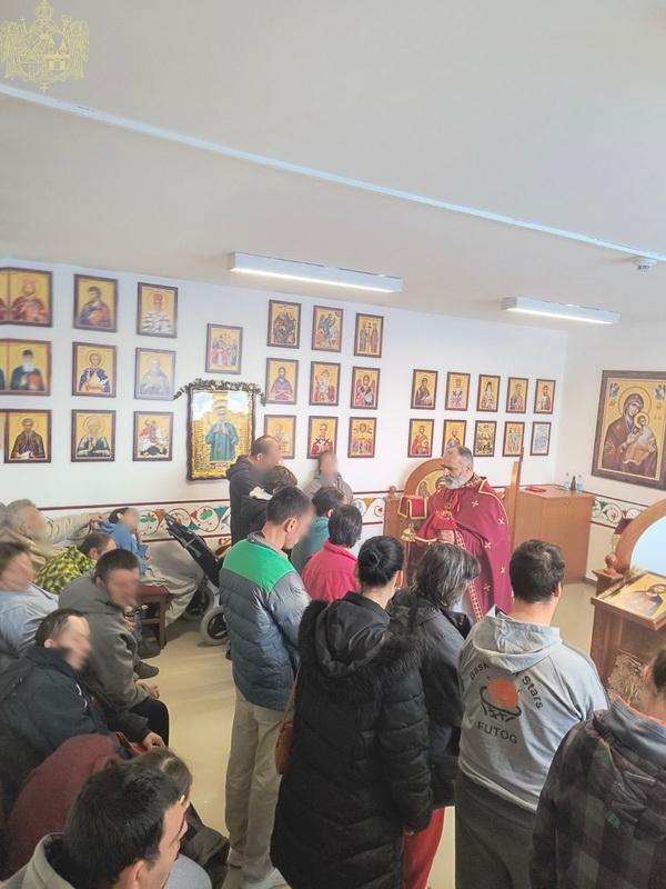Отац Лазар је сабранима честитао празник Рођења Христовог, уз молитвене жеље да Богомладенaц Христос свима подари мира, здравља и духовне радости, што је најпотребније у свакодневном животу. Он је нагласио да је Рођењем у пећини Витлејемској Бог посведочио да неизмерно воли људски род и да га није оставио, те да је Бог постао човек исти као и други људи и зато Он најбоље разуме људе кад им је тешко. После свете Литургије свим присутним штићеницима су подељени су божићни дарови.