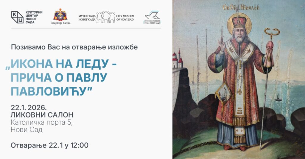 У четвртак, 22. јануара 2026. године, са почетком у 12:00 часова, у Ликовном салону Културног центра Новог Сада, биће отворена изложба „Икона на леду – прича о Павлу Павловићуˮ.