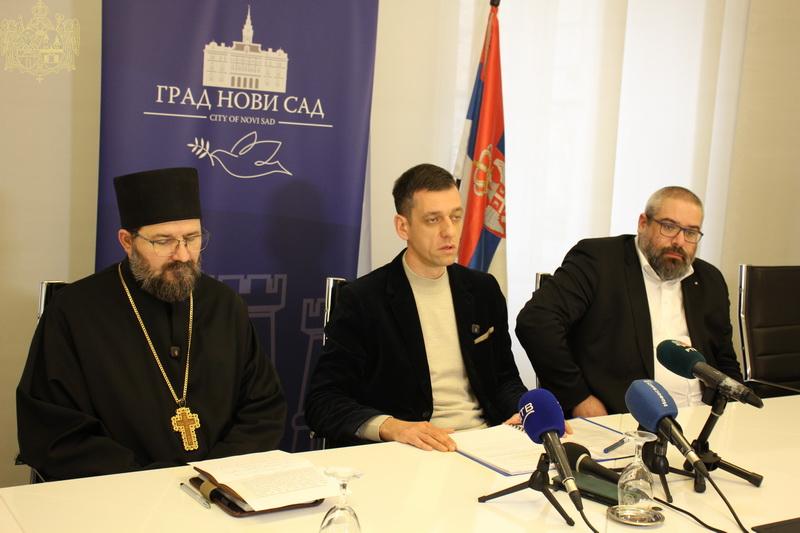 У име Епархије бачке, новинарима на конференцији се обратио протојереј-ставрофор Владан Симић, који је истакао да ће помен 23. јануара служити Његова Светост Патријарх српски г. Порфирије, уз саслужење Митрополита бачког г. Иринеја, Епископа осечкопољског и барањског г. Херувима, Епископа мохачког г. Дамаскина и новосадског свештенства. У програму ће учествовати хор „Свети Георгијеˮ при Саборном храму у Новом Саду. Прота Владан је захвалио Граду Новом Саду што подржава рад Одбора и изразио заједничку жељу и наду да ће идуће године, када обележавамо осамдесет пету годишњицу Погрома, бити завршена пројектно-техничка документација и започета изградња Меморијалног центра посвећеног жртвама Погрома, као и храма посвећеног светим мученицима бачким.