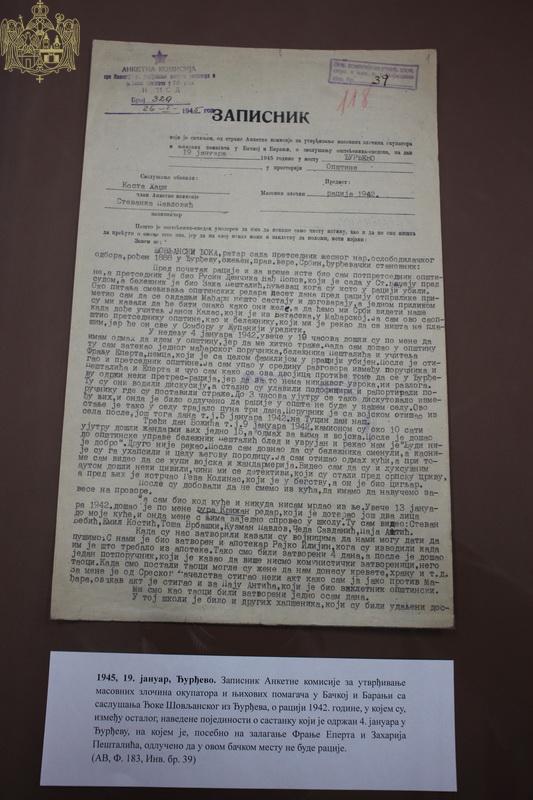 Уследило је обраћање г. Петра Ђуђева који је истакао да су се током Погрома у Шајкашкој и у Новом Саду на удару окупационог терора нашли просветни радници, као носиоци културе, образовања, ауторитета, националне и грађанске свести. Посебну тежину овим догађајима дају трагичне судбине самих школа које су претваране у привремене затворе, места мучења и ликвидације. „Ова изложба, зато, не почиње бројкама, већ именима. Она почиње животописима наставника са њиховим породицама, ученицима и причом о животима прекинутим на најсуровији начин. Кроз архивска документа, фотографије и сведочења преживелих и записнике Анкетне комисије, изложба показује механизам репресије и последице које је она оставила на цело друштво. Њен циљ није пуко набрајање жртава. Ова изложба је позив на критичко мишљење, на разговор и на памћење и нека буде опомена да се злочини над недужнима не смеју заборавити нити поновити.ˮ