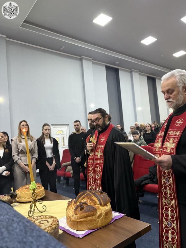 У присуству свештенства, верног народа и чланова Српског културног центра „Свети Саваˮ, протојереј Драган Штевић, настојатељ храма Вазнесења Господњег у Суботици, уз саслужење презвитера Ненада Вујасина, пароха храма Светог Нектарија Егинског у Суботици и ђакона Срђана Пантелића, извршио је чин благосиљања славских дарова.