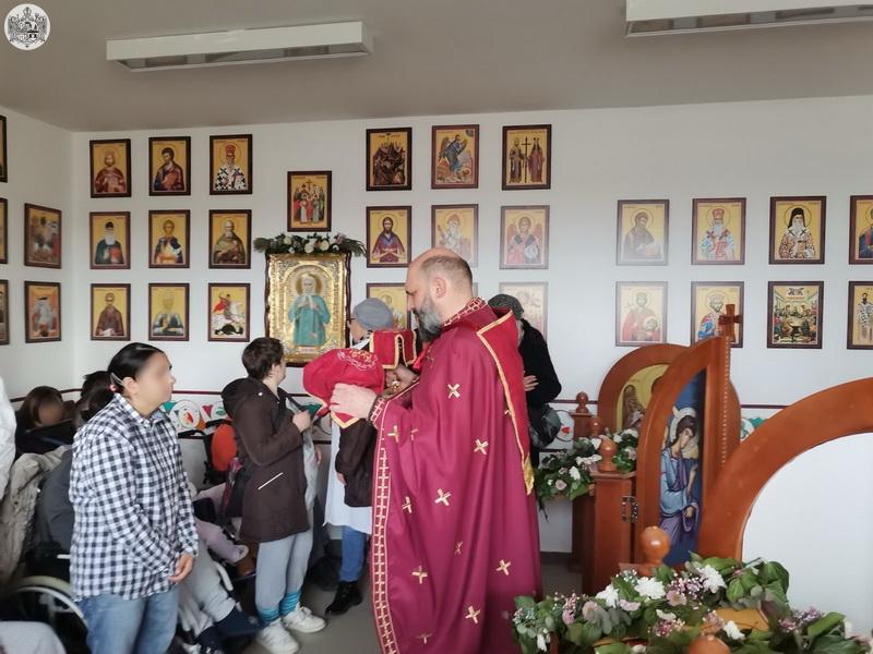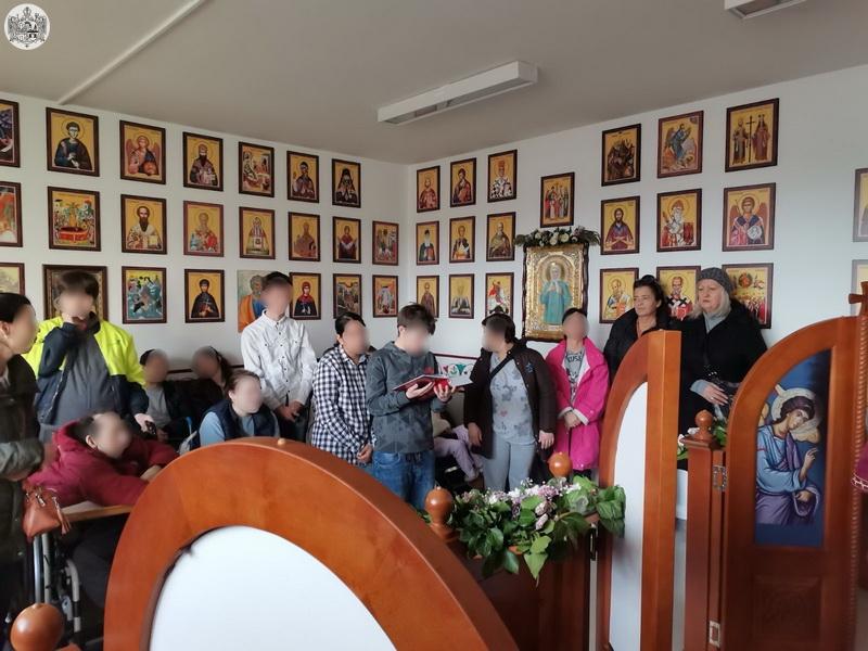 После свете Литургије штићеници Дома су отпевали песму „Ми смо деца небаˮ чије извођење никога није оставило равнодушним, а потом су се сви послужили за трпезом љубави која је испред параклиса приређена за све сабране.