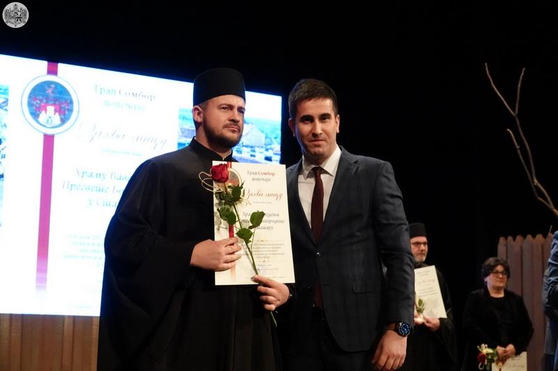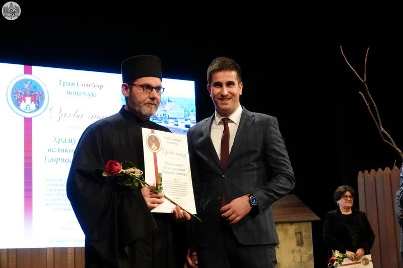 На почетку свечане академије, господин Антонио Ратковић, градоначелник Сомбора, поздравио је присутне и поводом дана Града уручио признања истакнутим појединцима и организацијама који су својим деловањем допринели афирмацији и развоју Сомбора. Поред осталих, признања су добили храм Светог великомученика Георгија у Сомбору, поводом 265 година од изградње храма и петнаестогодишњице организовања манифестације „Светођурђевски даниˮ којима се доприноси очувању духовности, културног идентитета и верске толеранције у Сомбору, као и храм Ваведења Пресвете Богородице у Стапару поводом 250 година од изградње храма и доприноса очувању духовности, културног идентитета и верске толеранције у Сомбору. У име храмова, признања су примили протојереј Саво Николић, архијерејски намесник сомборски, и презвитер Ђуро Родић, парох стапарски. Свечаној академији у Народном позоришту у Сомбору присуствовали су представници Покрајинске владе, пријатељских и братских градова и општина, конзулата, националних заједница, верских заједница, полиције, војске, републички и покрајински посланици, одборници, привредници и директори јавних предузећа и установа.