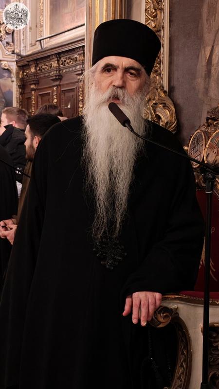 По завршетку богослужења, Високопреосвећени Митрополит бачки Иринеј се обратио сабраним верницима, пожелевши им срећан и благословен почетак Великог поста и затраживши опроштај од свих. „Црква je увела као живи подсетник, као своју свагдашњу поруку, да посебно ове вечери, на овом вечерњем богослужењу којим почиње сутрашњи дан, да искрено, из срца, не формално, него заиста из срца, једни од других заиштемо опроштај, јер постоје понекада и нехотична и невољна узајамна огрешења. Понекад је довољан и неки недобронамеран поглед да рани нечију душу, нечију савест, а да то не осети ни тај који је то учинио, а свесно можда ни онај коме је то зло нането. То говори и Спаситељ, да из срца наших излазе зле мисли, зле жеље и, на крају крајева, зла дела. Њима увек претходи зла помисао у дубини наших срца, зла жеља, зла намера. Зато је ово суштинска прилика, благословена прилика – Господ све чини, да нам олакша ход путем спасења, путем истинског и вечног живота и зато нас позива да опростимо једни другима, да затражимо опраштај једни од других, као што Он опрашта нама и као што је узео све грехе људскога рода на Себе, Он, Једини Безгрешни, Једини Свети, Једини Савршени, Једини Господ, и тиме нам показао пут спасења и вечног животаˮ, поручио је Митрополит бачки Иринеј.