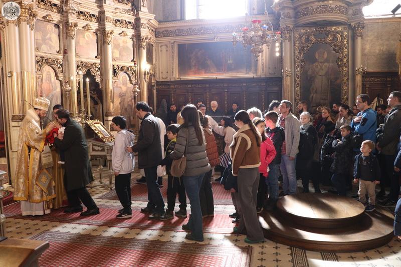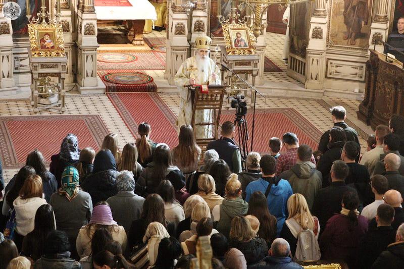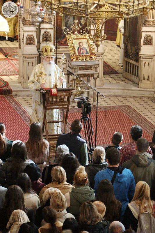 Беседећи после прочитаног јеванђелског зачала, Високопреосвећени митрополит Иринеј је, између осталог, рекао: „Седми васељенски сабор, дакле последњи Сабор који су признавали сви хришћани Истока и Запада, у осмом веку, 787. године, благословио је и озаконио заувек убудуће поштовање икона и оне су свечано враћене и у храмове и домове хришћана, одакле су биле силом уклањане. Мећутим, и даље је постојала метеж, смутња, покушај да се то све спречи и после Седмог васељенског сабора, тако да је 842. године сазван нови Сабор, у време царице Теодоре, који је свечано извршио обнову поштовања икона и вратио их на њихово место и од тада, па до данас, ако Бог дâ и убудуће, оне се поштују, управо зато што се изражава вера у Оваплоћење Бога. Бог није апстрактан, само предмет наше вере која ничим не може бити аргументована или, на неки начин, на нечем утемељена, него је наша вера, поред осталога, и историјски утемељена на сусрету са Оваплоћеним Логосом Божјим, са Господом Христом, који су имали свети апостоли, а и сви свети кроз векове се удостојавају виђења, боговиђења као виђења Христа Господа. И зато то није питање неког теолошког ситничарења, или нека ситница, него је питање саме суштине наше вере. Вера у Свету Тројицу, као Једнога Бога, и вера у Оваплоћење Једнога од Свете Тројице, тојест у историјски карактер Личности Богочовека Христа, јесу темељне истине наше свете вере.ˮ