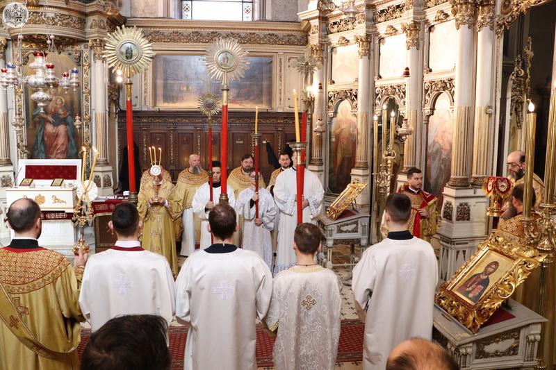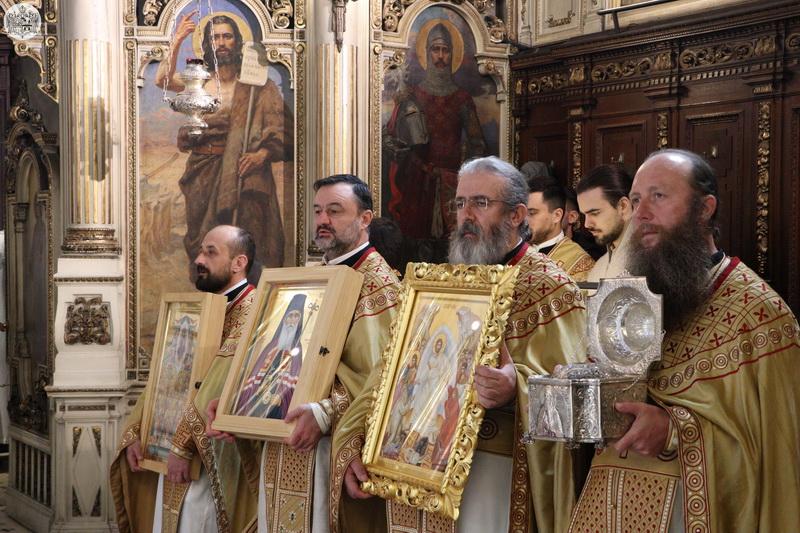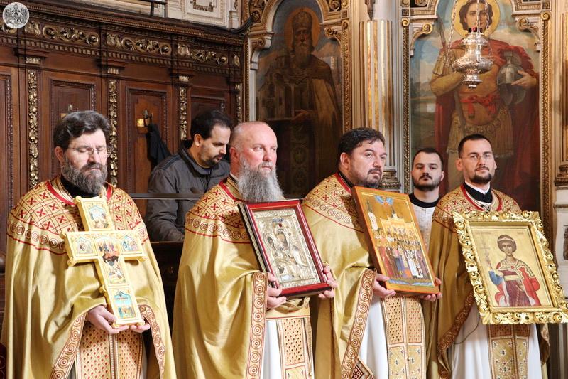После заамвоне молитве служен је чин литије са светим иконама у Недељу Православља.