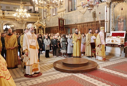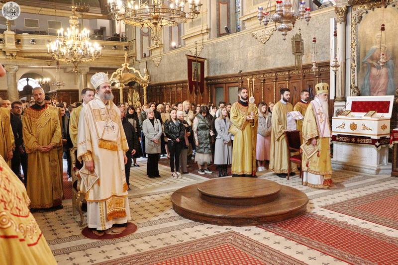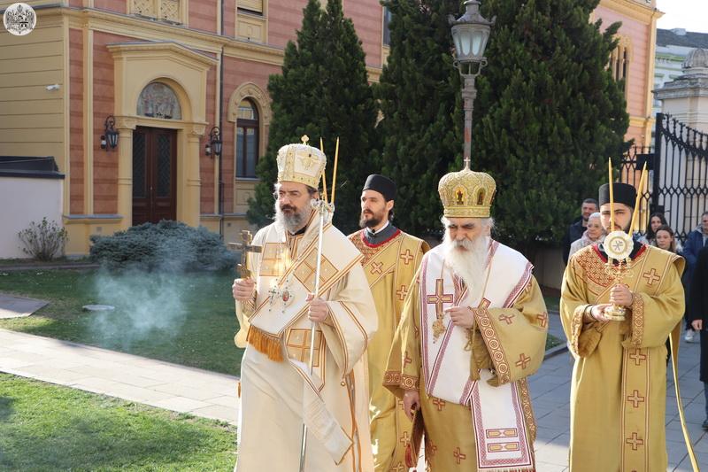 У Крстопоклону недељу, 2/15. марта 2026. године, на светој архијерејској Литургији у Саборном храму у Новом Саду началствовао је Његово Преосвештенство Епископ моравички господин Тихон, викар Патријарха српског, уз саслужење Његовог Високопреосвештенства Митрополита бачког господина др Иринеја, свештенства Саборног храма и новосадских ђакона.