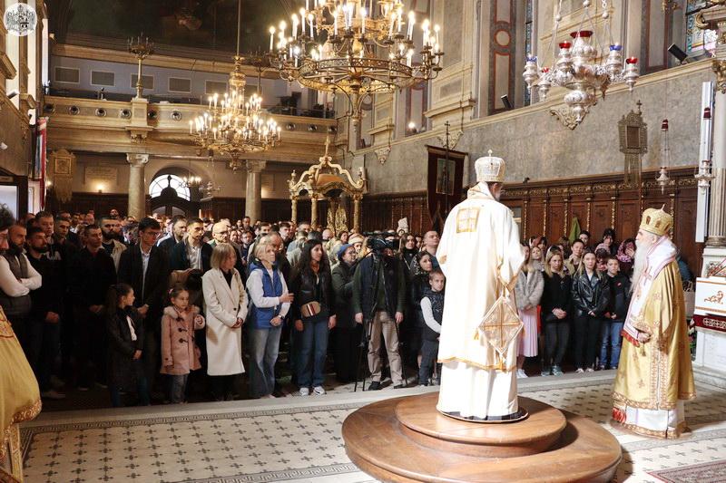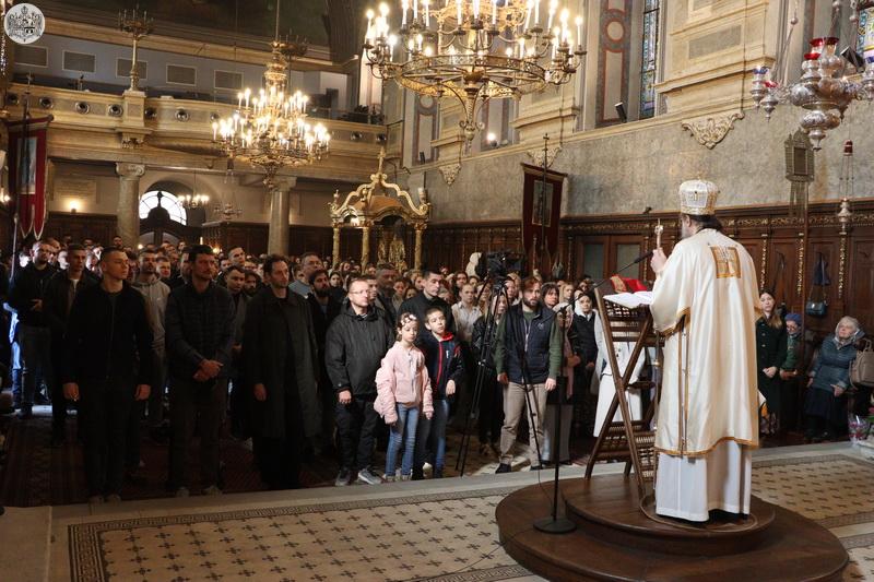Беседећи после прочитаног јеванђелског одељка, Преосвећени Епископ моравички Тихон је сабрани верни народ поучио следећим речима: „Истина Цркве је да тело није тамница, нити је овај свет простор кажњавања. Полазиште светих Отаца увек је било да је Бог створио свет из љубави и све што је створио да је било добро. И, као што знамо, сишао је к нама и постао један од нас, примио је тело. Зато, када учимо о општем васкрсењу мртвих које чекамо, када чекамо долазак Христа Судије у слави, ми сматрамо да то васкрсење из мртвих неће бити просто повратак на старо него испуњење у коме ће свет да добије не само нов него пун квалитет и достојанство. А за тако нешто смо и створени. Нека је са срећом пост, да се поклањамо Часном Крсту и да чекамо празник васкрсења, а кроз сав свој живот да чекамо будући догађај доласка Христа Судије и Месије, Коме слава вавек.ˮ